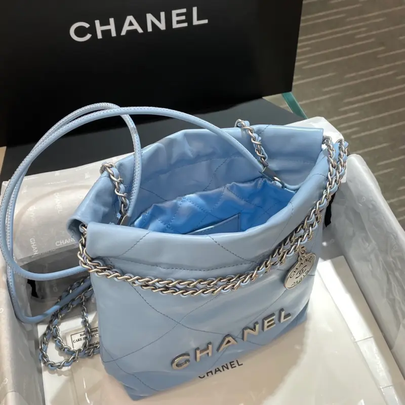 Your garbage bag milk blue is instantly attracted by this milk blue! The butterfly pea flower-like milk blue paired with the silver chain is so cute and perfect for spring and summer! Compared to the gold chain, the silver chain is more low-key and has a cool feeling. Size: 20*19*6cm