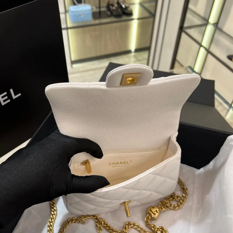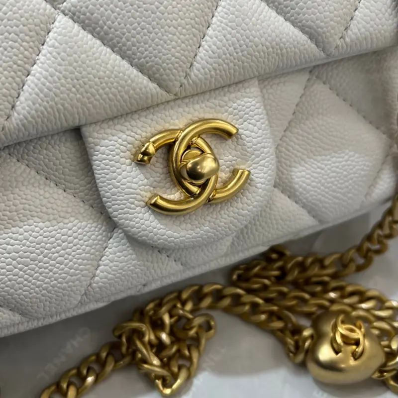 23p Love Golden Ball White Another hot style white love lychee skin Fang Pangzi has to say that the charm of Xiangxiang is really great~ This capacity is OK and the mobile phone can also be placed. There is an adjustment buckle and it can be carried diagonally regardless of height~ Size: 14*20*8cm