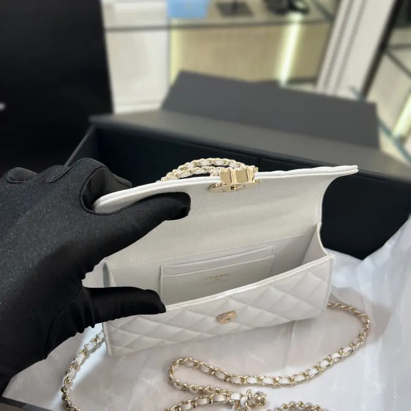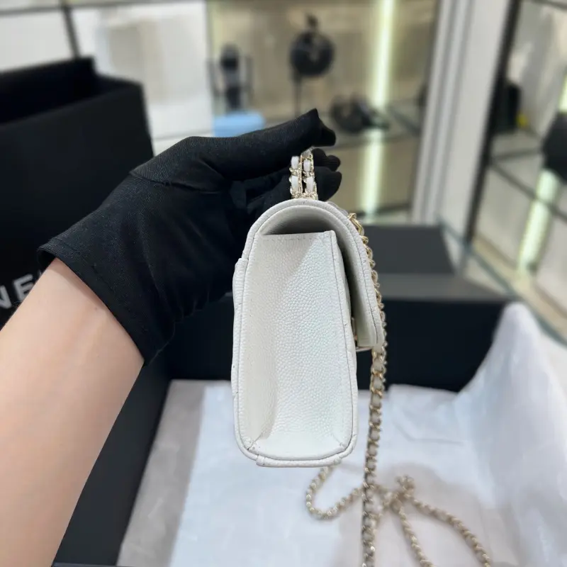 The 23p Kelly large white Meiming small bag is actually quite good. It can hold my iPhone 14 Pro, lipstick, car keys, and several other things. It is perfect for daily outings. I wear it crossbody around my hips, which is perfect! It smells so good! I’m already looking forward to pairing it with a mini skirt in the summer. The white with light gold is so beautiful. Size: 19x10x4.5cm
