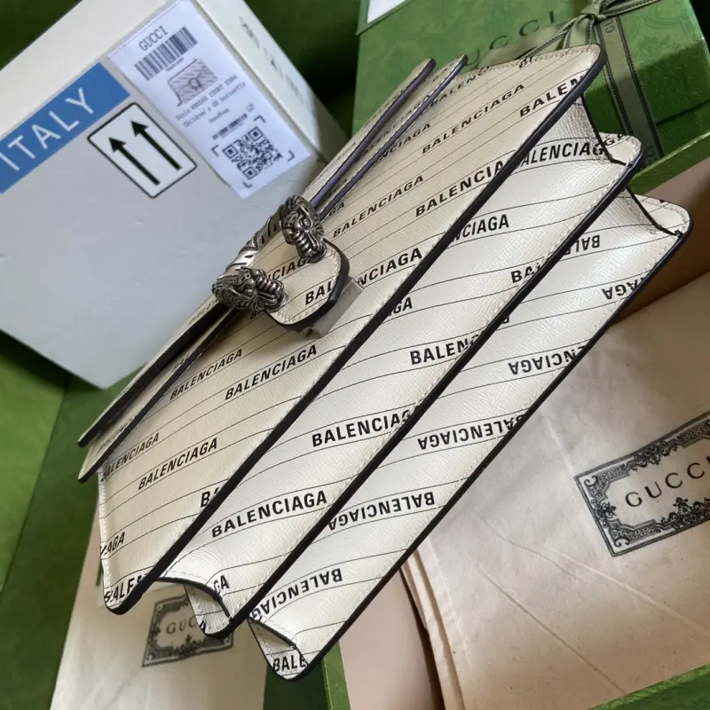 [Includes full original green box packaging] This runway-inspired Jackie Dionysus bag/chain bag from the GG x BL collaboration collection is a new season It bag with a magical charm unmatched by any other brand. That retro, nostalgic, vintage feel is the kind that gets better with each look. This truly special collection features hardware: all-copper, thickly gold-plated hardware, meticulously crafted and manufactured! Model: 400249. Dimensions: 28 ?? 18 ?? 9 cm. Color: White leather/collaborative print.