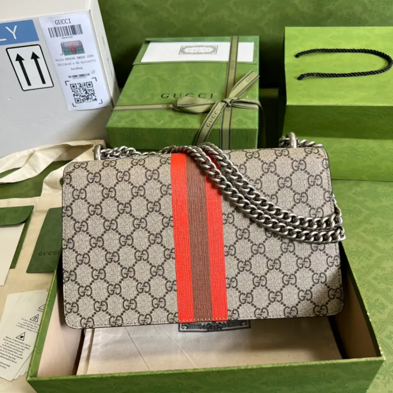 The Dionysus handbag, a striking piece from the Gbag Parade collection, features a vibrant, geometric pattern reminiscent of a jockey’s majestic uniform. Its name is inspired by the sand ring, or pre-race saddlery area, where horses run and warm up before a race, allowing spectators to choose their favorite winners. The distinctive pattern, combined with the “Centum” print, gives this ultra-mini Dionysus handbag an elegant touch. Model No. 400249. Dimensions: 28*18*9cm. Color: Brown PVC/print.