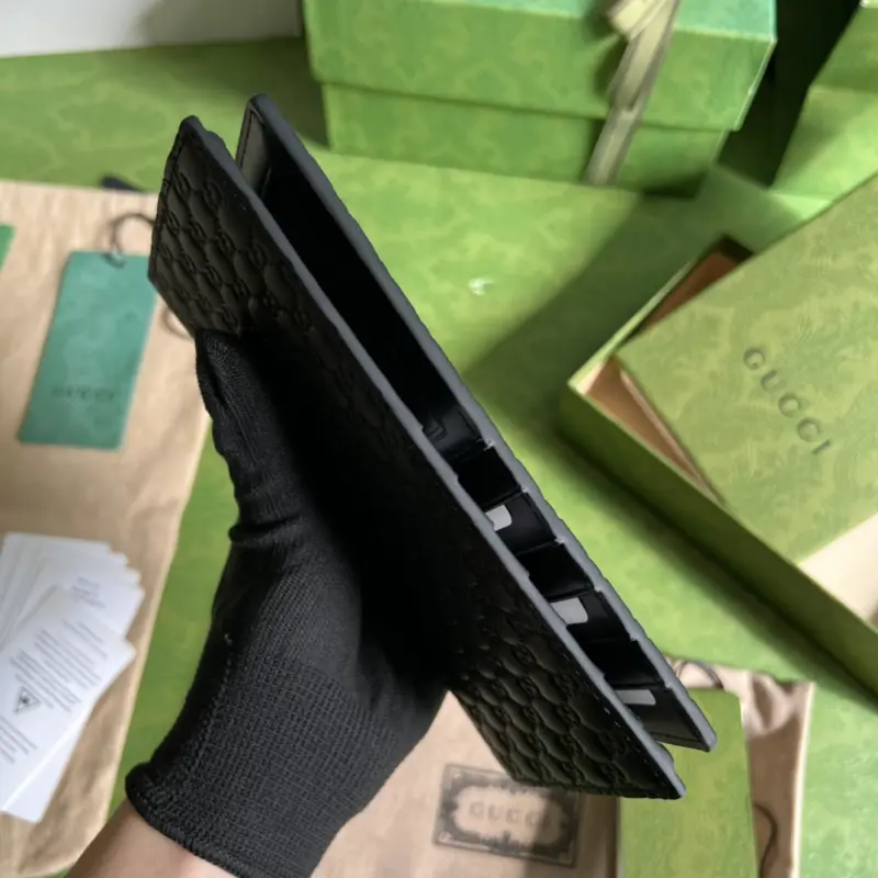 The latest suit clip has arrived, and it can also be used as a card holder, making it a practical design staple. The classic GG pattern, a signature element of the brand since the 1930s, continues to inspire new expressions nearly a century later. Model: 449245. Dimensions: 18*9*2cm. Color: Black/Small G embossed leather.