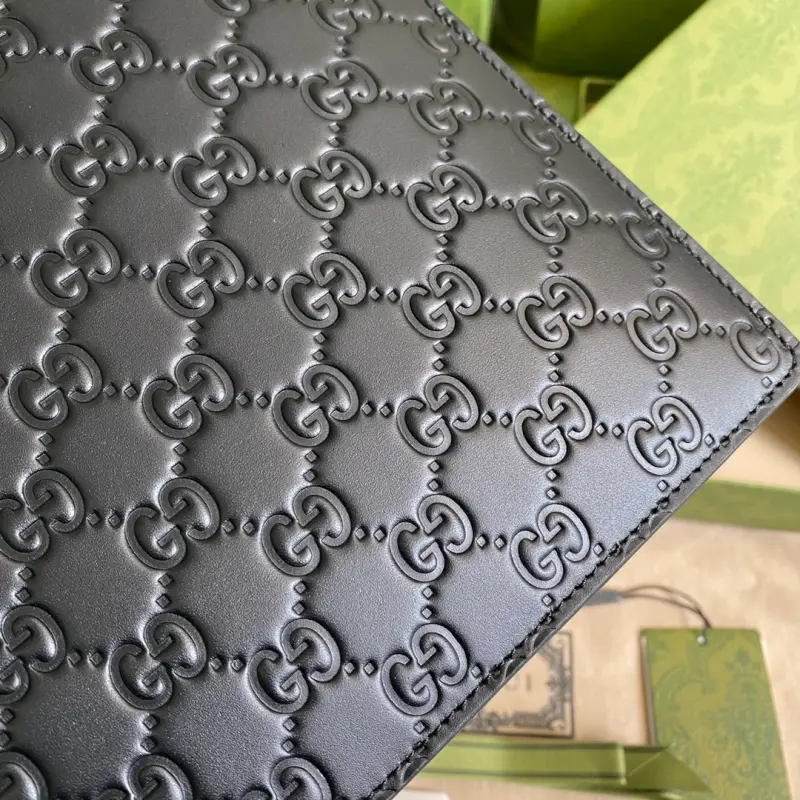Comes with a complete set of original green box packaging. This authentic wristband is made from a custom mold, with matching specifications and lining, a unique design that has become a hallmark of the brand. Made from imported cowhide, this wristband boasts a simple, elegant design, a large capacity, and is extremely practical. The wristband also features a detachable Italian leather strap! The inner, sides, and bottom are crafted from premium cowhide. Model: 473963. Dimensions: 30.5 x 21 x 1.5 cm. Color: Black embossed leather.