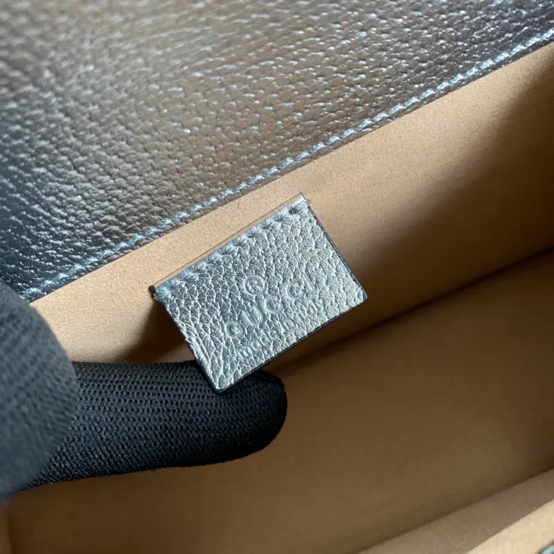 Comes with full original green packaging. New model introduction: Immersed in retro nostalgia, the Ophidia family welcomes a new member: the medium handbag. Its boxy shape evokes vintage design. Made of GG premium canvas, it’s embellished with red and green webbing, a signature element of the brand, paying homage to its equestrian roots. Ophidia Web Model: 499623. Dimensions: 25 x 13.5 x 7 cm. Color: Silver, all-leather.