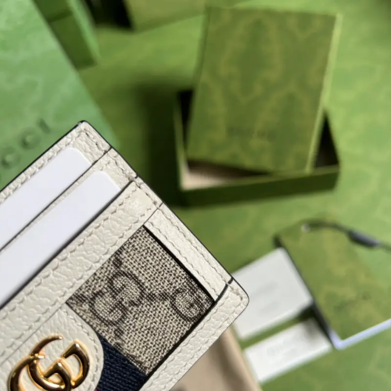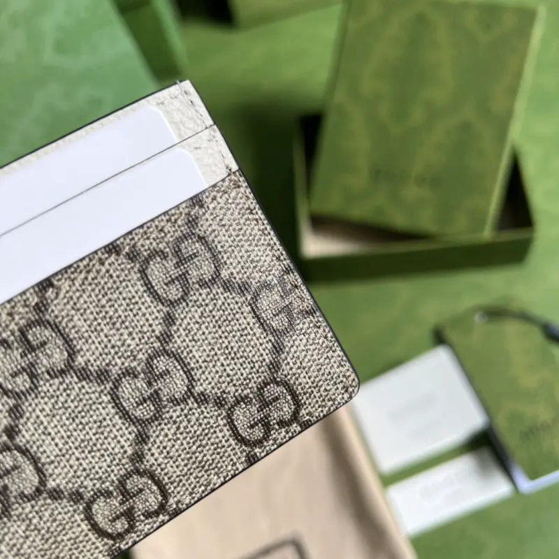 The latest card holder has arrived, complete with original green box packaging. It can also be used as a card holder, making it a practical design staple. The classic GG pattern, a signature element of the brand since the 1930s, continues to inspire new expressions nearly a century later. Model: 523159. Size: 10 x 7 cm. Color: White/PVC