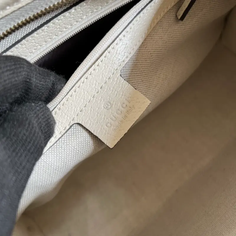 Comes with full original green packaging. New model introduction: Immersed in retro nostalgia, the Ophidia family welcomes a new member: the medium handbag. Its boxy shape evokes vintage design. Made of GG premium canvas, it’s embellished with red and green webbing, a signature element of the brand, paying homage to its equestrian roots. Ophidia Web Model: 598234. Dimensions: 28.5 x 18 x 9 cm. Color: White/PVC.