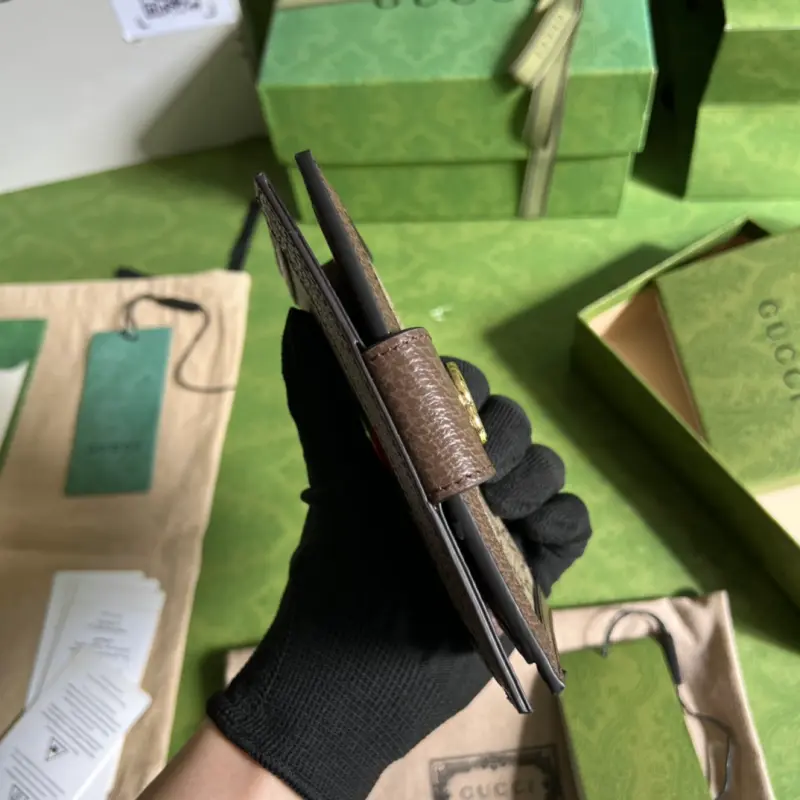 The latest passport bag has arrived. It can also be used as a wallet, making it a practical design staple. The classic GG pattern, a signature element of the brand since the 1930s, continues to inspire new expressions nearly a century later. Model: 598914. Dimensions: 10.5 x 14.5 cm. Color: Brown/PVC.