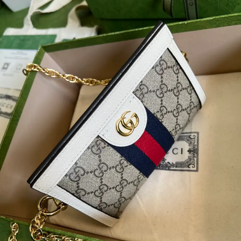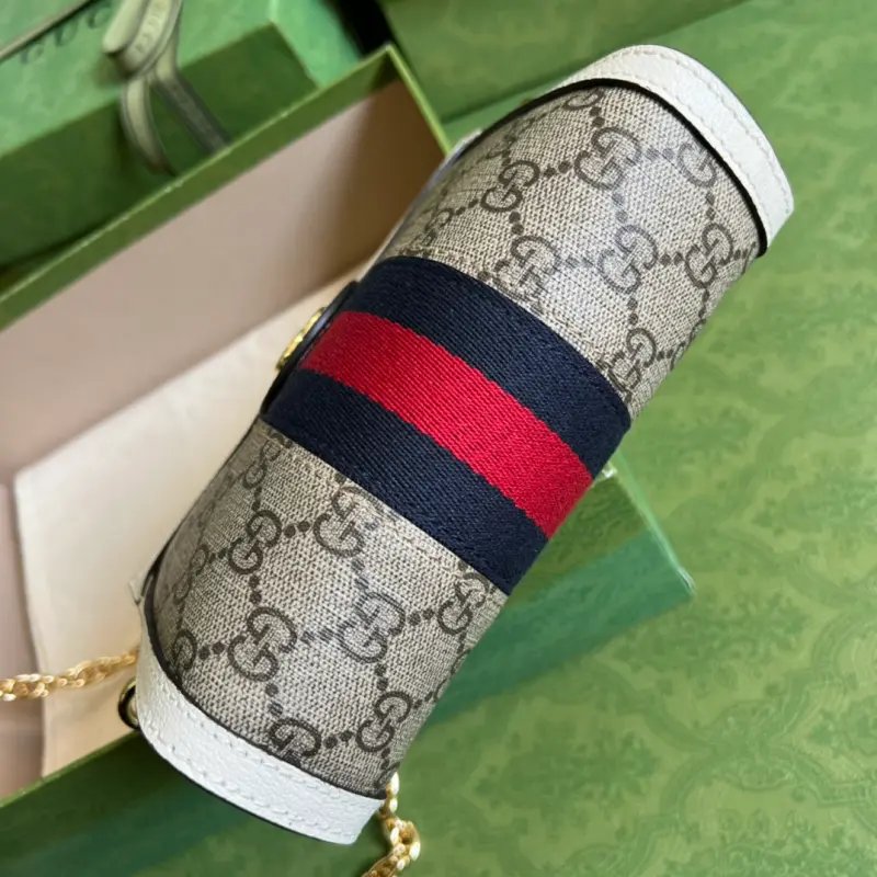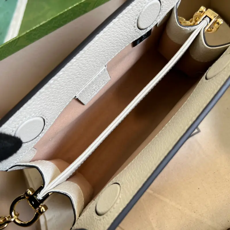 The Gbag Meo Vintage chest bag, complete with original green packaging, stands out from the Gbag Infinity Collection, infusing vintage style with modern design. The mini bag features an oval leather label and the brand’s signature feline head. This mini bag embodies all the brand’s classic elements, creating a versatile and adorable look that’s both classic and vintage. Model: 602676. Dimensions: 19 x 14 x 6 cm. Color: White/PVC
