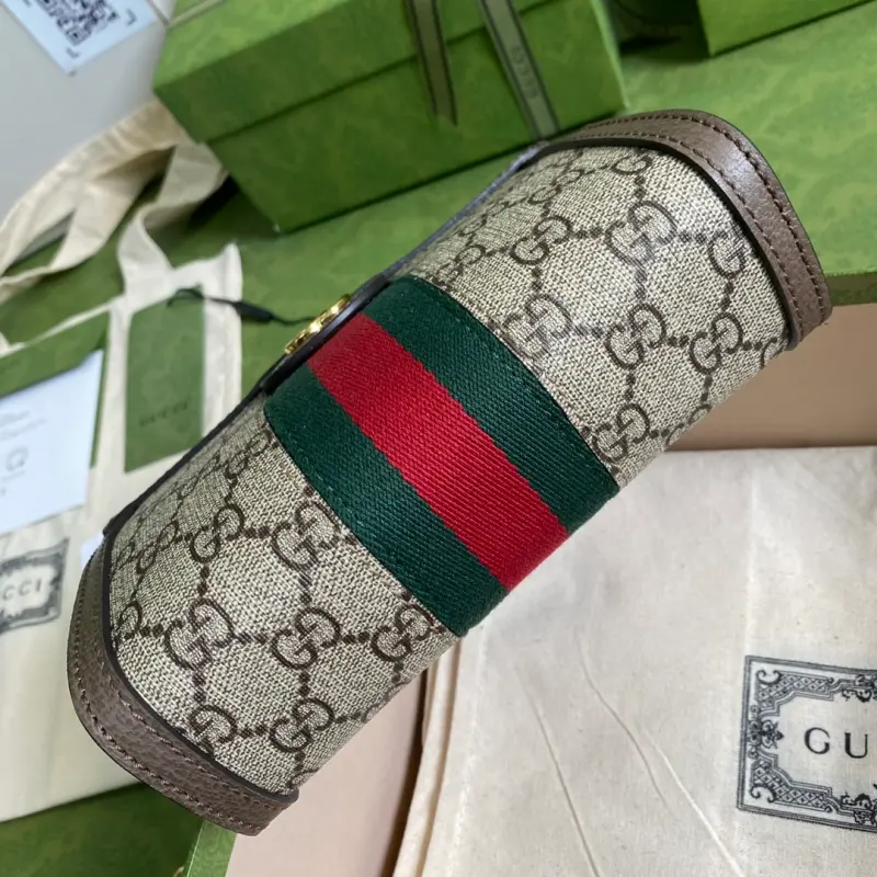 Comes with full original green packaging. New model introduction: Immersed in retro nostalgia, the Ophidia family welcomes a new member: the medium handbag. Its boxy shape evokes vintage design. Made of GG premium canvas, it’s embellished with red and green webbing, a signature element of the brand, paying homage to its equestrian roots. Ophidia Web Model: 602676. Dimensions: 19 x 14 x 6 cm. Color: Brown/PVC.