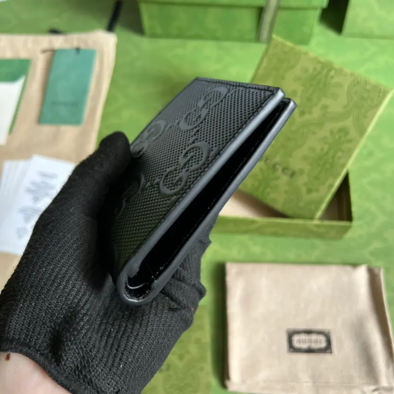 Comes with a full set of original green packaging. This authentic wristband is made from a mold, with matching specifications and lining, a unique design that has become a hallmark of the brand. Made from imported cowhide, this wristband boasts a simple, elegant design, a large capacity, and is extremely practical. The wristband also features a detachable Italian leather strap! The inner, sides, and bottom are crafted from premium cowhide. Model: 625562. Dimensions: 12 x 9.7 cm. Color: Black with embossed G leather.