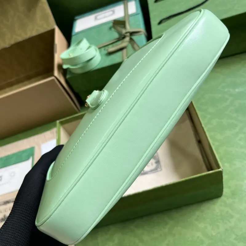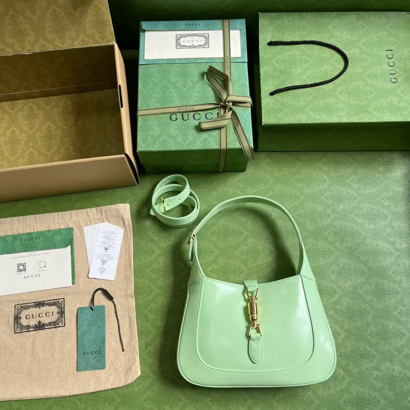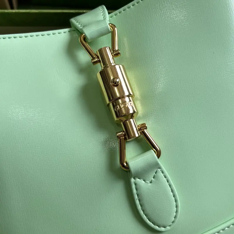 Comes with a full set of original green box packaging. A limited edition classic from the Jackie 1961 collection. The entire 1961 collection has become a brand classic. This season’s new all-leather white model is a stunning sight, showcasing the irreplaceable allure of genuine leather. This style is light and stylish, without the heavy branding, featuring only the brand logo on the buckle. The Jackie handbag is also very practical, with a detachable shoulder strap that allows it to be carried sideways or crossbody, making it versatile and easy to pair with work, casual, or even rock styles. Model: 636709. Dimensions: 27.5*19*4cm. Color: Light Green/Turquoise Leather.