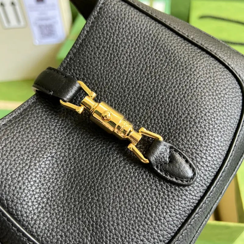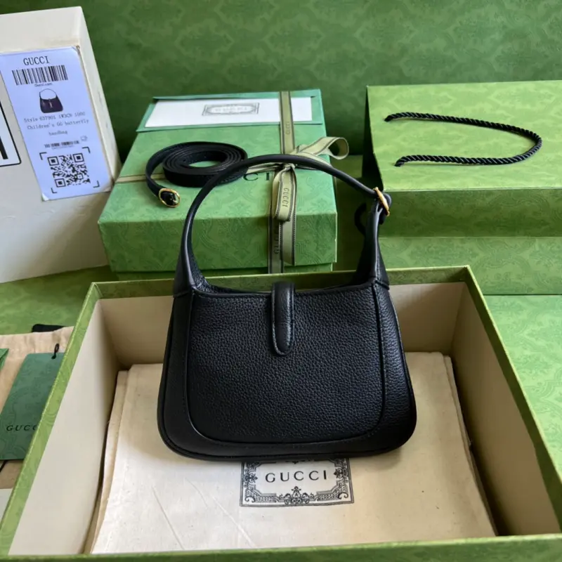 Comes with a complete set of original green packaging. The updated GG Jackie pebbled leather underarm bag. After six months of popularity, the Jackie continues to be incredibly popular. Major brands have released underarm bags, demonstrating just how popular this fashion trend has become. The underarm bag has been around since the last century and remains a classic. A GG underarm bag is a true icon that will drive you crazy. This is a must-have this year. Model: 637091. Dimensions: 19 x 13 x 3 cm. Color: Black/pebbled leather.