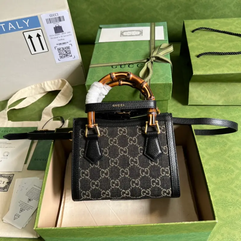 [Includes full original green box packaging] This small denim leather bamboo tote bag from Gbag’s “Aria” collection offers a modern take on a classic. Bamboo is a Gbag signature, appearing in various collections since the 1940s. After more than eight decades of evolution, this classic element is reimagined in black leather for this small tote. The bag also features two interchangeable shoulder straps: a smooth leather strap for an elegant and timeless look, and a striped webbing strap for a strong brand identity. Model No. 655661. Dimensions: 20*16*10cm. Color: Black/Denim.