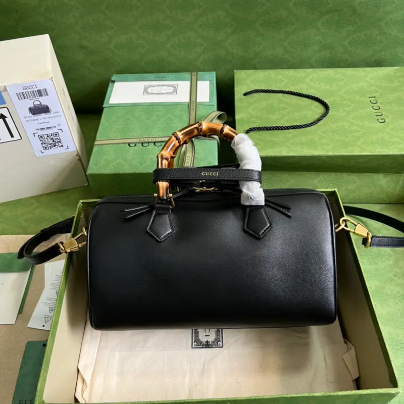 [Comes with a full set of original green box packaging] The original leather bamboo Gbag “Aria-Fashion Aria” series uses modern techniques to reinterpret classic elements. Bamboo is one of the classic elements of Gbag and has appeared in various series of the brand since the 1940s. After more than 80 years of development and evolution, this classic element is combined with black leather and presented in a new way on this small handbag. The handbag also comes with two interchangeable shoulder straps-the smooth leather material shows an elegant and classic temperament, and the striped webbing shoulder strap highlights the strong brand connotation. Model: 655663. Size: 30*18*15cm. Color: Black/Original Cowhide