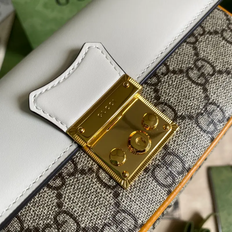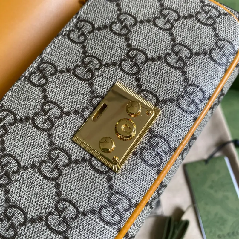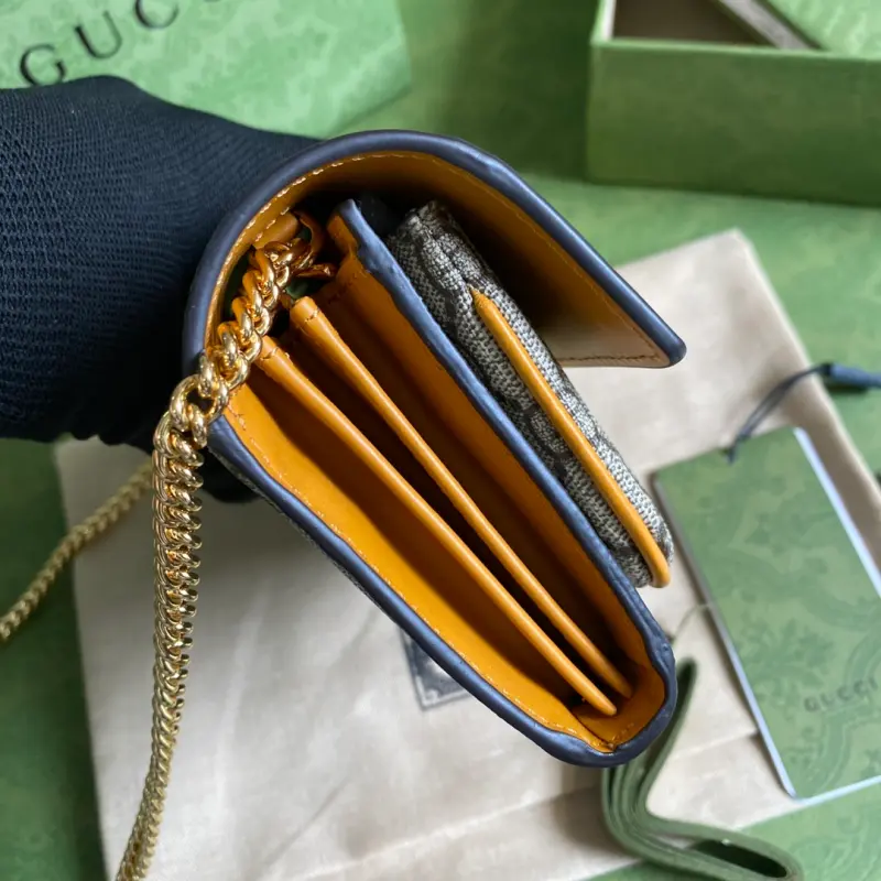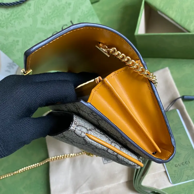 Comes with a full set of original green box packaging. The classic king of lock chain bags has a new member! Featuring the iconic small lock, this phone bag is crafted from genuine cowhide and G-print fabric in a three-in-one, elegant design. Model: 658226. Dimensions: 19*10*4cm. Color: Brown/PVC.