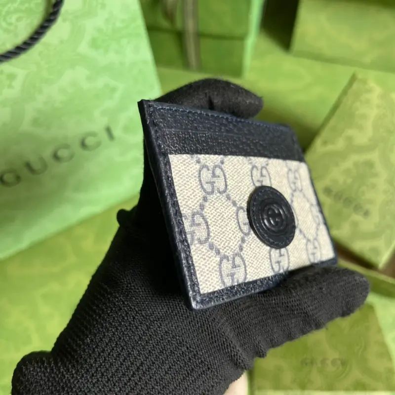 This sleek, elegant card holder is crafted from blue GG Supreme canvas, accented with tonal leather trim and an Interlocking G label, showcasing the allure of a timeless design. Made of eco-friendly blue GG Supreme canvas. Features blue leather trim. Viscose lining and an oval Interlocking G leather label. Dimensions: 10 x 7 cm. Color: Blue/PVC. Model No.: 673002