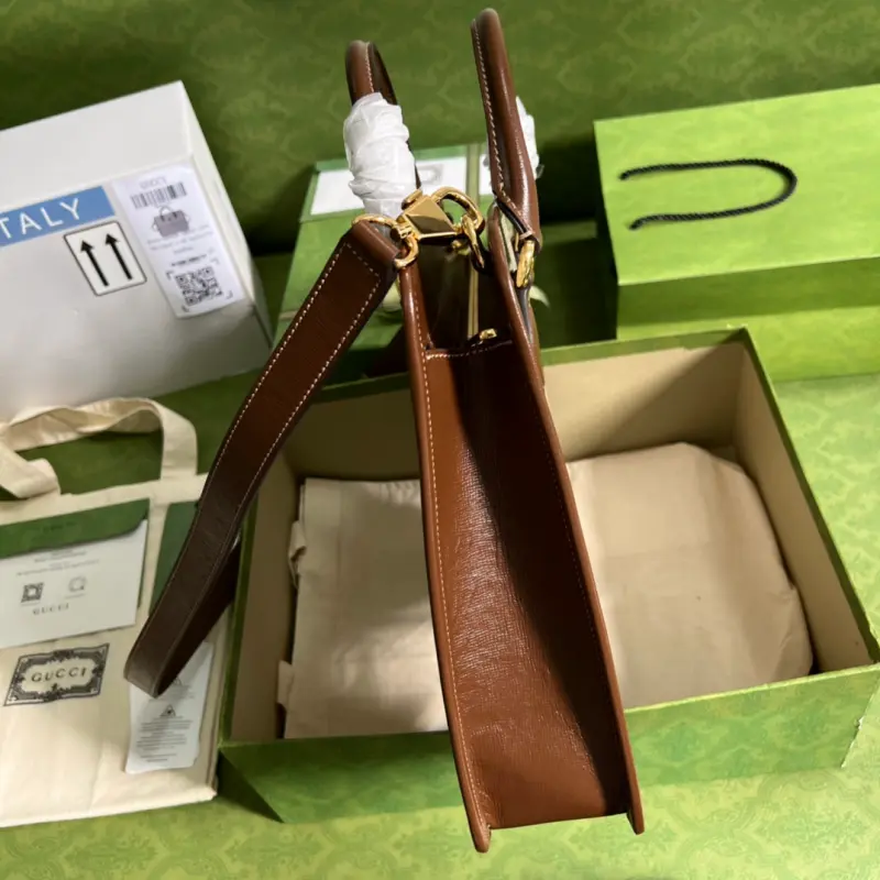 Model: 674143. Dimensions: 31*28*7cm. Color: Brown PVC/brown leather.