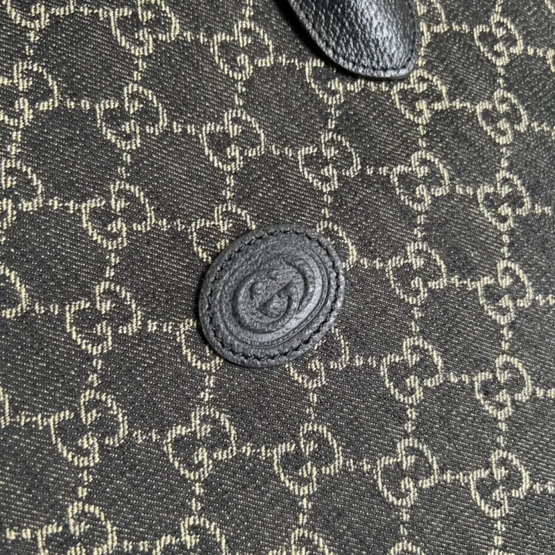 This large tote bag in original leather and denim comes with a complete set of original green box packaging. Gbag’s “Aria” collection offers a modern take on a classic. Bamboo, a Gbag signature, has been featured in various collections since the 1940s. After more than eight decades of evolution, this classic element is now reimagined in black leather for this small tote. The bag also features two interchangeable shoulder straps: a smooth leather strap for an elegant and timeless look, and a striped webbing strap for a strong brand identity. Model No. 674155. Dimensions: 36*38.5*12cm. Color: Black/Denim.