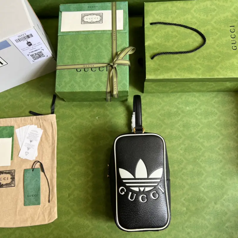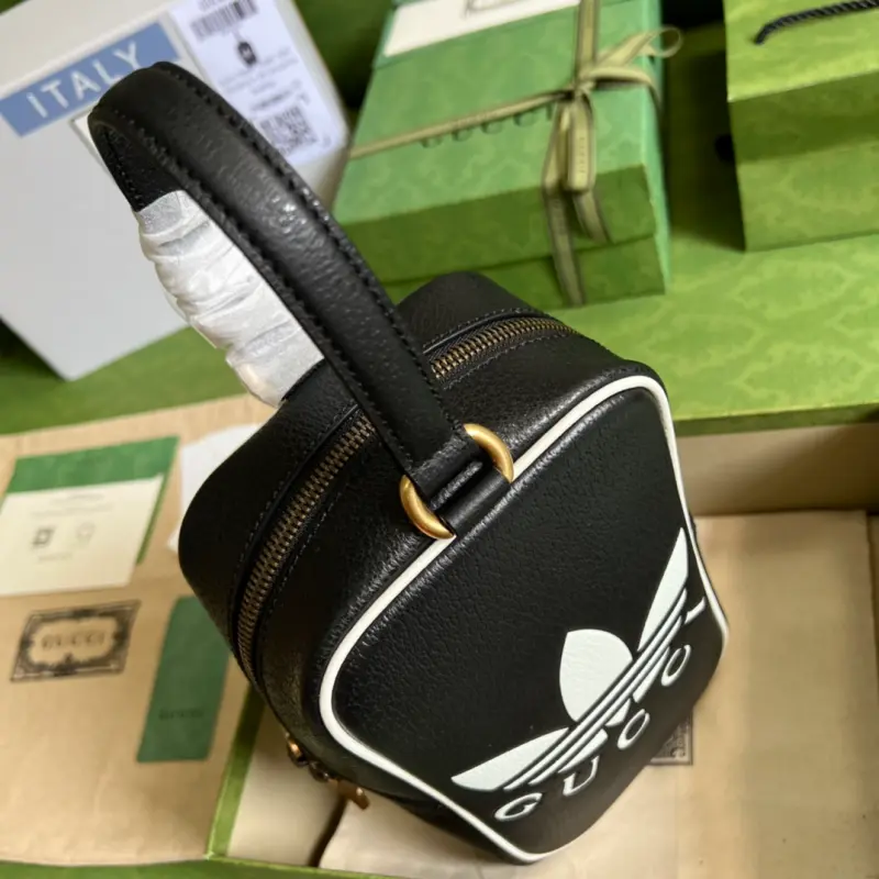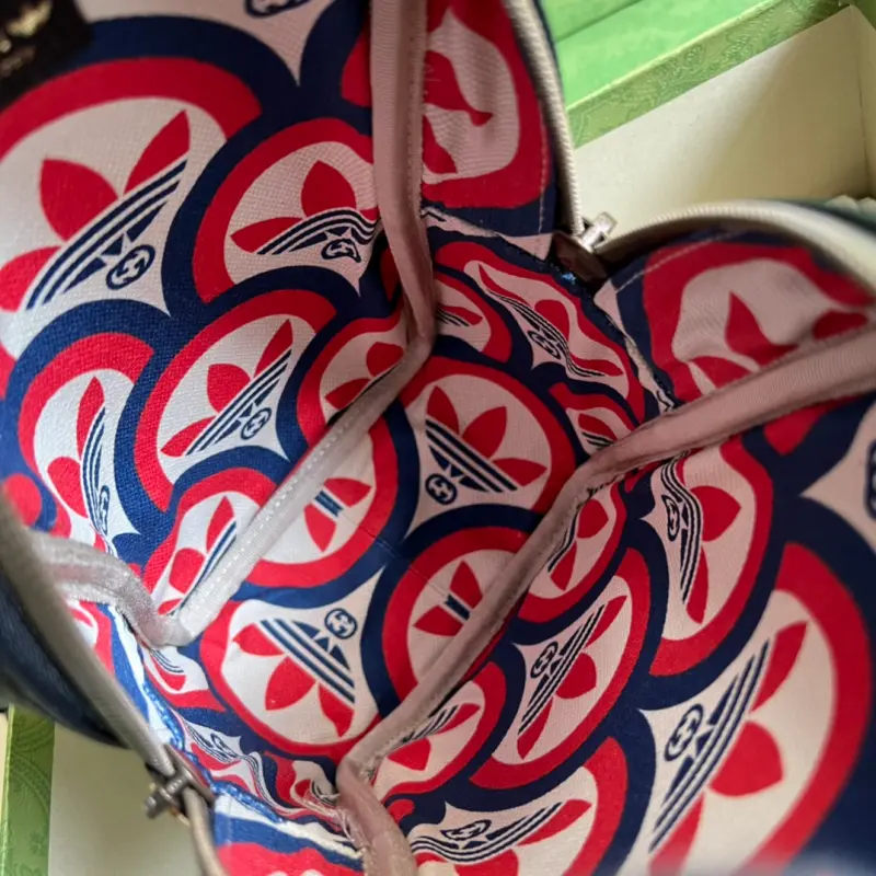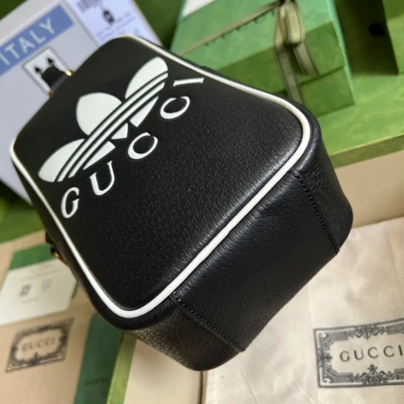 As part of the ad GG collaboration, the 1955 mini tote bag features a Trefoil print. Integrating the rich and historic heritage of both brands, the adidas x Gbag collaboration celebrates the brand’s history and iconic design language through a three-line design. Creative Director Alessandro Michele drew inspiration from the 1980s and 1990s, creating a collection that blends nostalgia with modern flair. Model No. 702387. Dimensions: 15 (width) x 26 (height) x 9.5 cm.
