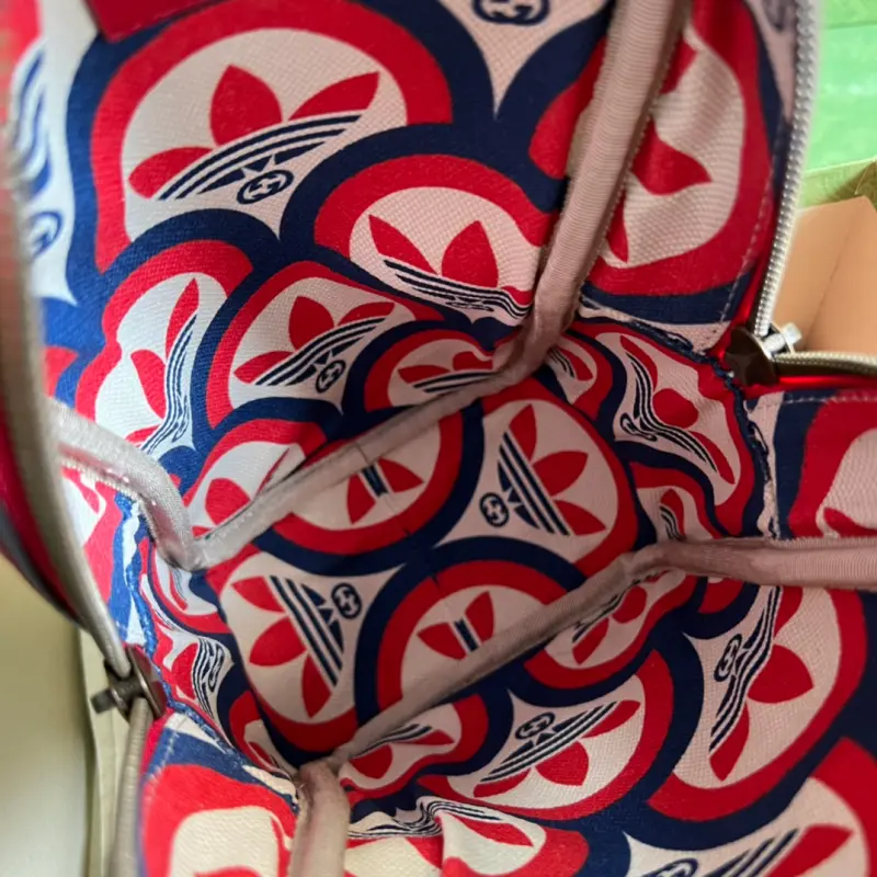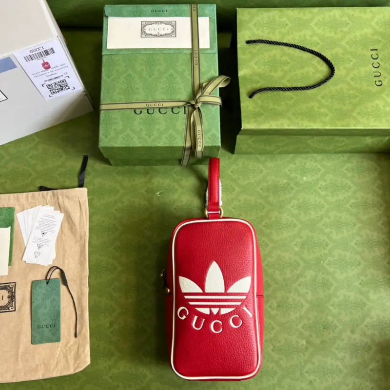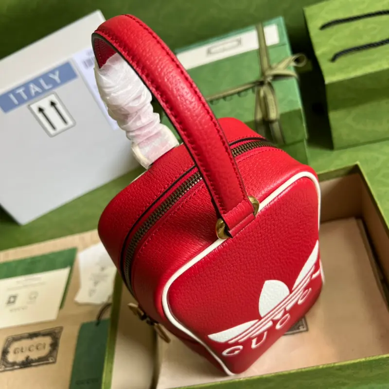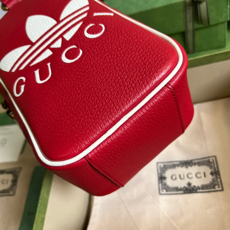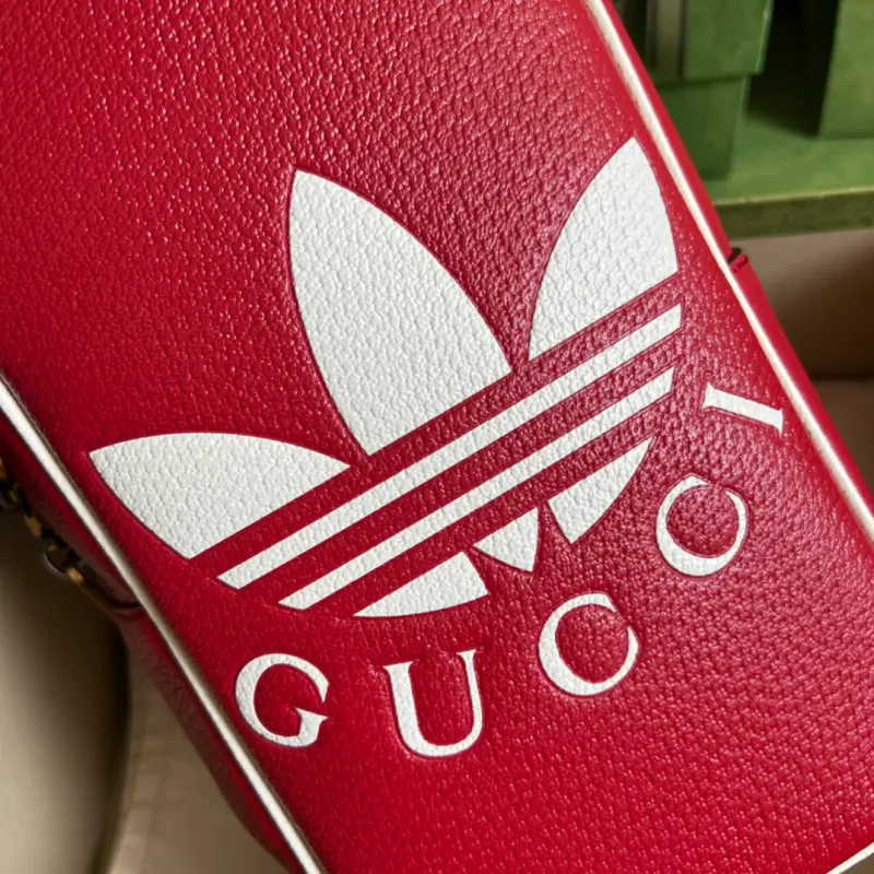 As part of the ad GG collaboration, the 1955 mini tote bag features a Trefoil print. Integrating the rich and historic heritage of both brands, the adidas x Gbag collaboration celebrates the brand’s history and iconic design language through a three-line design. Creative Director Alessandro Michele drew inspiration from the 1980s and 1990s, creating a collection that blends nostalgia with modern flair. Model No. 702387. Dimensions: 15 (width) x 26 (height) x 9.5 cm.
