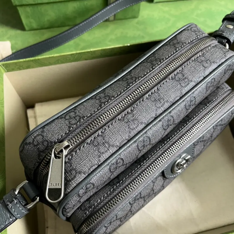 [Includes full original green box packaging] This Ophidia mini bag, crafted in gray and ebony GG Supreme canvas, is a reimagined take on the Ophidia collection, showcasing the brand’s timeless style. The gray web and Double G hardware evoke the brand’s rich design heritage, imbuing this waist bag with a powerful signature. Made of gray and ebony GG Supreme canvas with gray leather trim, gold-tone hardware, and a gray web Double G, it features belt loops on the back, one exterior pocket, and two interior flap pockets that fasten with buttons and a zipper closure. Model No. 723312. Dimensions: 24cm (width) x 13cm (height) x 6cm (depth). Color: Gray/PVC.