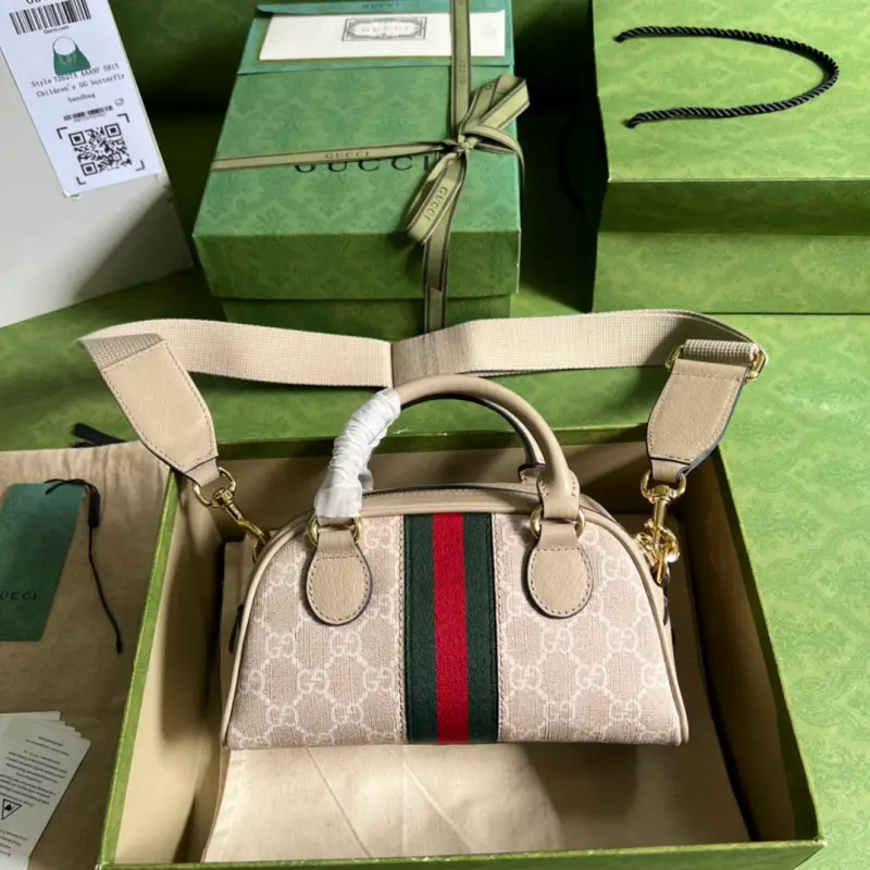 [Comes with a full set of original green box packaging] Ophidia series mini GG handbag, as the brand’s iconic material, GG Supreme canvas has become the main fabric in the Gbag design universe. It is given a new interpretation through the Gbag aesthetic perspective in the new series. This mini handbag is embellished with interwoven letter patterns all over. The iconic double G accessories make the item more refined and highlight the charm of the brand logo. Beige and ebony GG Supreme canvas, oatmeal leather piping, red and green web double G, leather keychain, handle (6.5 cm high), detachable leather web, zipper closure. Model: 724606. Dimensions: 21 (width) x 12 (height) x 10cm (depth) Color: oatmeal/pvc
