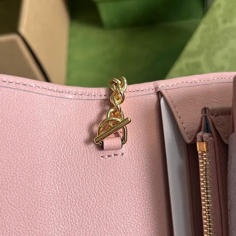 [With full set of original green box packaging] Detailed picture of how to carry the chain bag (with full hardware chain) Gbag Blondie interlocking light pink (original leather) I fell in love at first sight, I have been waiting for this new model for a very long time!! I personally like it very much, second-hand bags have always been my favorite and they are super popular now, mainly because they are so beautiful! It is really amazing when I get it. The texture of the hardware leather is very rich and the combination is very rich. It can be changed anytime and anywhere. It can be carried under the arm or cross-body depending on your mood. I think both ways of carrying are very retro, fashionable and fascinating! This is the only item that has moved me among the many styles recently. Model: 725215. Size: 21×10.5cm. Color: light pink/original leather