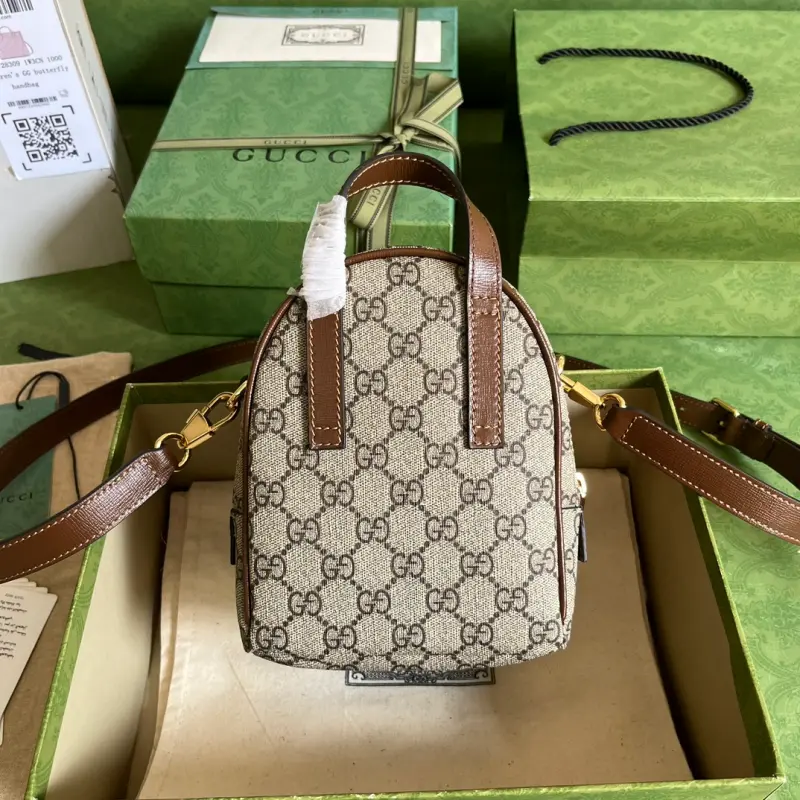 This versatile bag features the Interlocking GG Supreme logo. Crafted in signature beige and ebony GG Supreme canvas, it’s trimmed with brown leather. The bag can be worn at the waist or crossbody, a reimagining of the iconic silhouette. It features two open interior compartments and a zippered exterior pocket. Made of beige and ebony GG Supreme canvas with brown leather trim, it features an oval Interlocking G leather plaque. This versatile bag features two open interior compartments and a zippered exterior pocket, along with handles (5 cm drop) and a detachable shoulder strap (49 cm drop). Model No. 725654. Dimensions: 15 cm (width) x 19 cm (height) x 8 cm (depth). Color: Brown/PVC.