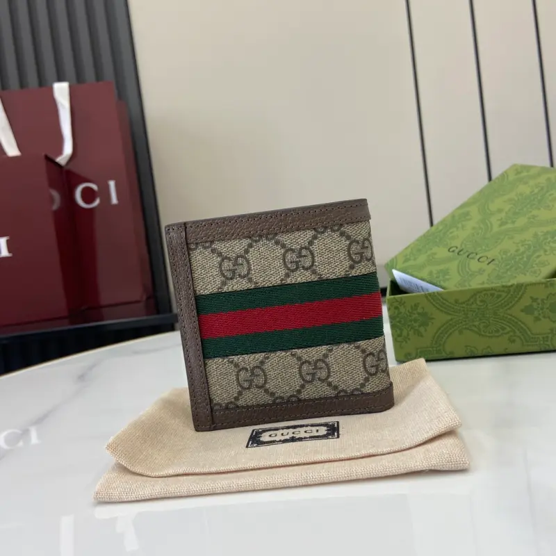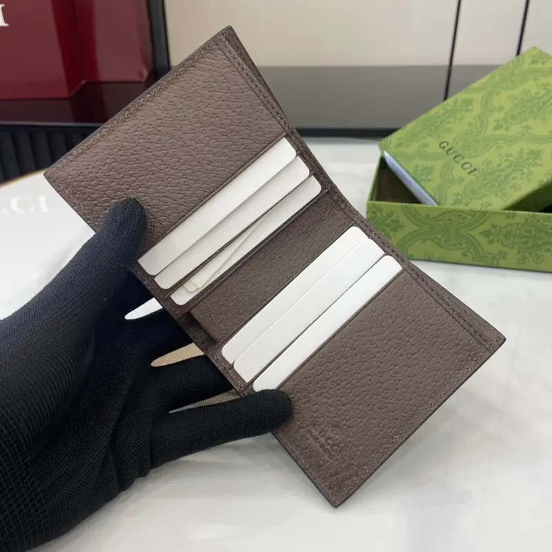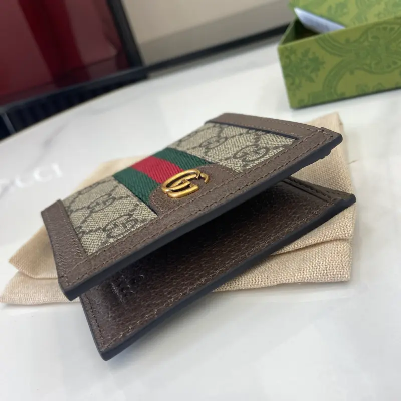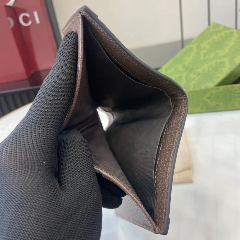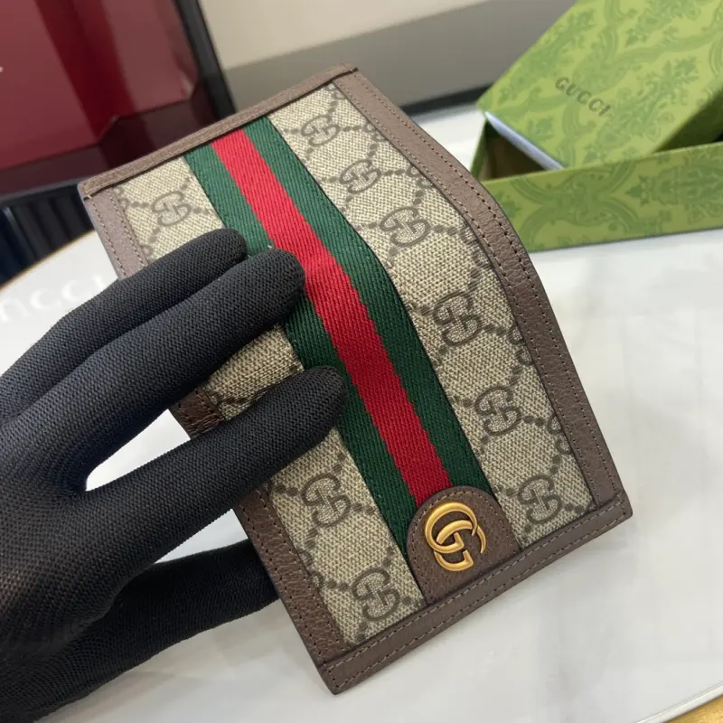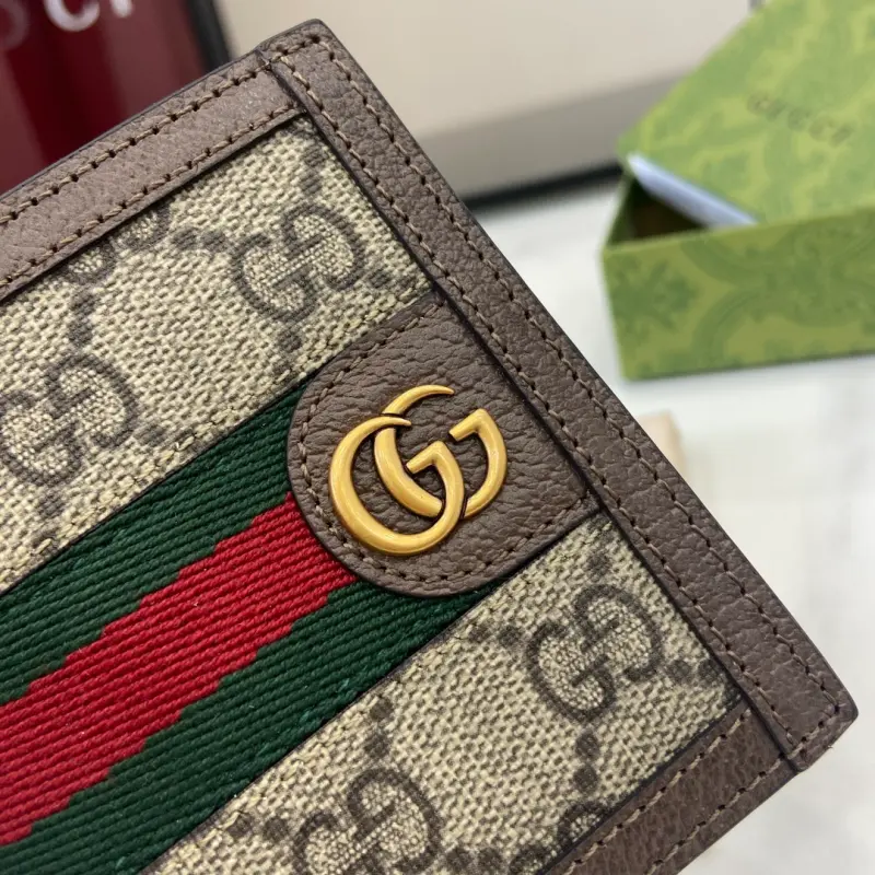 [Includes full original green box packaging] This Ophidia short wallet features the GG logo, an evolution of the Gbag diamond quilting pattern that first appeared in the 1930s and has since become a Gbag staple. This new Ophidia card holder features this recognizable pattern in blue and black. Double G hardware adds a touch of glamour to the look. Made of blue and black GG Supreme canvas with blue leather trim, palladium-tone hardware, and the Double G. Model No. 732016. Dimensions: 10 x 10 cm. Color: Brown/PVC.