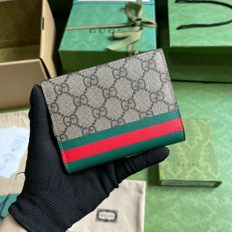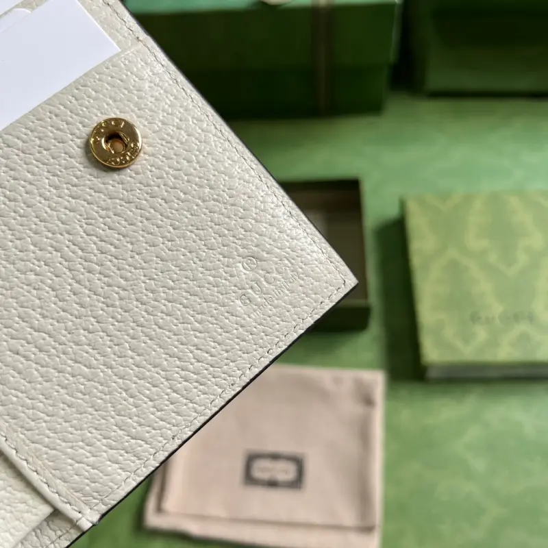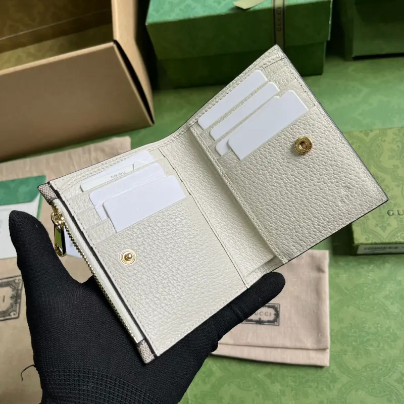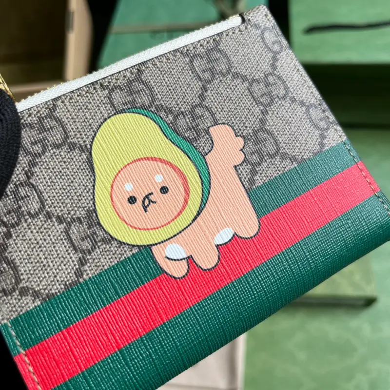 New GG animal print long wallet (comes with full original green box packaging). American illustrator and designer Angela Nguyen (also known as “Pikarar”) draws inspiration from pop culture, anime, and animals, creating vibrant prints and embroideries that add a touch of playfulness to clothing and accessories. This long wallet showcases her creative inspiration in the form of animal print. Made of beige and ebony GG Supreme canvas with an animal print and Angela Nguyen’s “Pikarar” artwork, the wallet features six card slots, a zippered pocket, two bill compartments, and a snap closure. Model No. 736758. Dimensions: 12.5cm (width) x 9cm (height) x 2cm (depth). Color: Brown and white PVC/animal print.