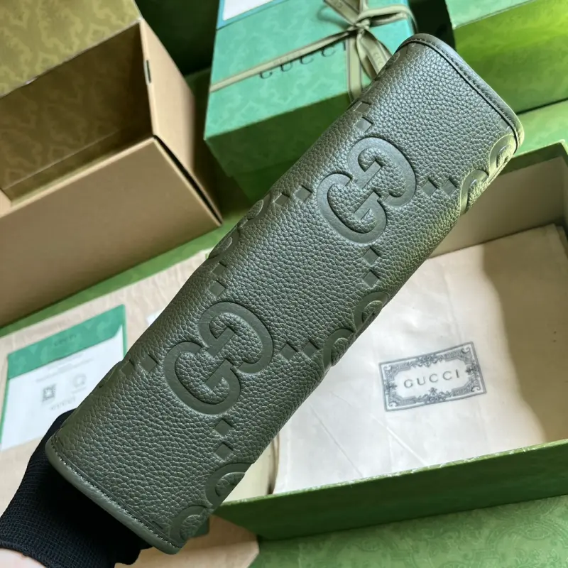 [Includes full original green box packaging] Super Double G clutch. The embossed GG print transforms a small everyday item into a stylish, everyday accessory. Innovative textures and finishes continue to shine in Gbag’s latest collections, showcasing vibrant energy and individual charm. This clutch is expertly crafted from green leather and features an oversized Double G logo throughout. It features green Super Double G leather with a moir?? fabric lining. The interior includes two card slots and a zipper closure. Weight: Approximately 0.39 kg. Model No. 739490. Dimensions: 28.5 cm (width) x 18 cm (height) x 9 cm (depth). Color: Green/Original G embossed leather.