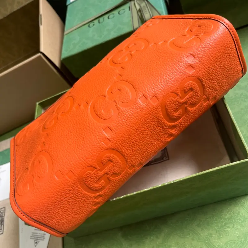 Comes with a complete set of original green box packaging. This Super Double G clutch. The embossed GG print transforms a small everyday item into a stylish, everyday accessory. Innovative textures and finishes continue to shine in Gbag’s latest collections, showcasing vibrant energy and individual charm. This clutch is expertly crafted from orange leather and features an oversized Double G logo throughout. It features orange Super Double G leather with a moir?? fabric lining. The interior includes two card slots and a zipper closure. Weight: Approximately 0.39 kg. Model No. 739490. Dimensions: 28.5 cm (width) x 18 cm (height) x 9 cm (depth). Color: Orange/Original G Embossed Leather.