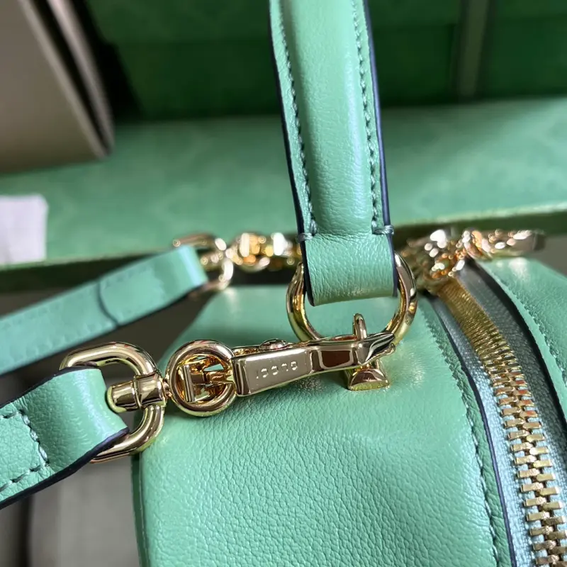 This Gbag Blondie handbag, complete with original green box packaging, features a circular Interlocking GG design inspired by the brand’s archives. This Gbag Blondie handbag, featuring classic pieces like a shoulder bag with handles and a crossbody bag, is embellished with refined leather appliqu??s, reinterpreting the brand’s heritage. Crafted from light green leather, it features a circular Interlocking GG leather appliqu??. The handles (8cm drop) and shoulder strap (52cm drop) are adorned with a double zipper closure embellished with the circular Interlocking GG design. Model No. 744434. Dimensions: 17cm (width) x 15cm (height) x 9cm (depth). Color: Light Green/Original Leather.
