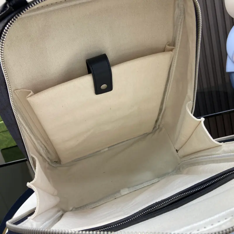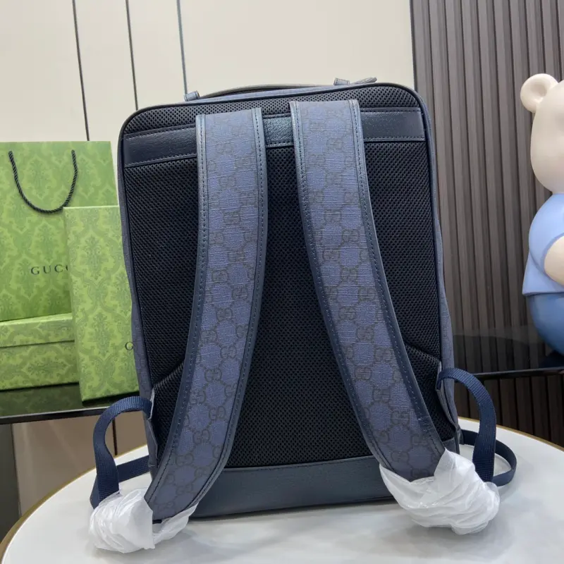 [Comes with a full set of original green gift bags] [New] Ophidia series medium GG backpack. The 2024 early spring series presents the Ophidia series shoulder bags, tote bags and handbags in black GG denim, and the silver-toned hardware presents a contrasting metallic texture. This backpack cleverly combines classic GG Supreme canvas with blue quilted mini GG canvas to create a fashionable item with a contemporary style. Blue and black GG Supreme canvas piping, black leather piping, palladium-tone hardware, cotton and linen blend lining with double G, interior: padded laptop compartment and a zipper pocket, exterior: zipper front pocket, top handle (3 cm high) zipper closure. Model: 745718. Dimensions: 40 (length) x 30 (width) x 14cm (thickness) Color: blue/pvc. Made in Italy