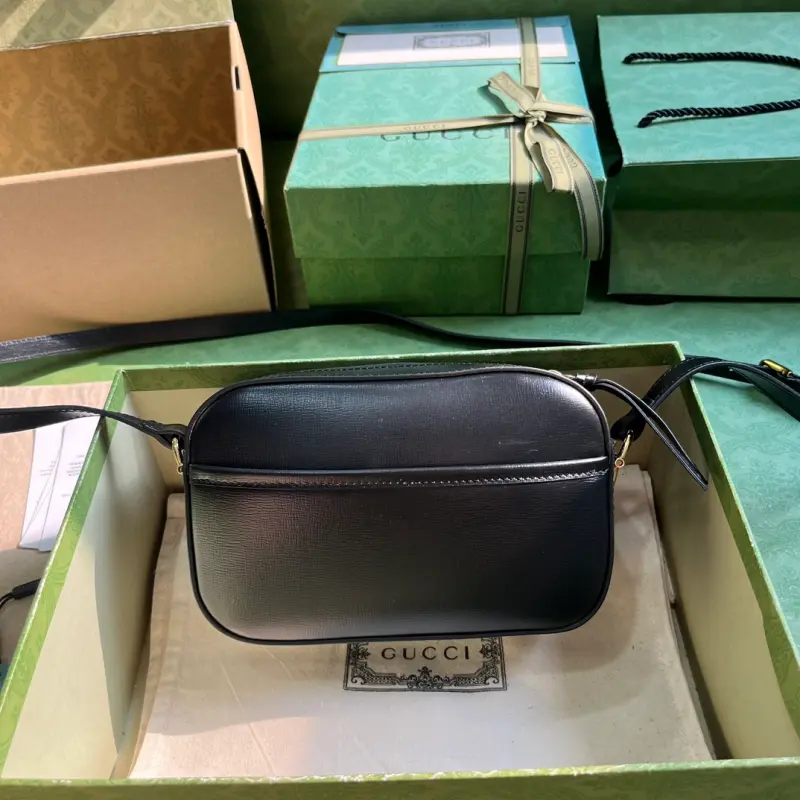 Gbag Horsebit 1955 small shoulder bag (comes with full original green box packaging). The new collection features the Gbag Horsebit 1955 small shoulder bag, combining versatility and practicality. Crafted from classic beige and ebony GG Supreme canvas, this shoulder bag features a zipper closure and an adjustable shoulder strap. The bag is crafted from black and ebony GG Supreme canvas with gold-tone hardware, a cotton and linen blend lining, and a horsebit buckle. The interior includes one card pocket, an exterior open pocket, and an adjustable shoulder strap (55 cm drop) with a zipper closure. Model No. 760196. Dimensions: 20 cm (width) x 13 cm (height) x 6 cm (depth). Color: Black/Original Leather.