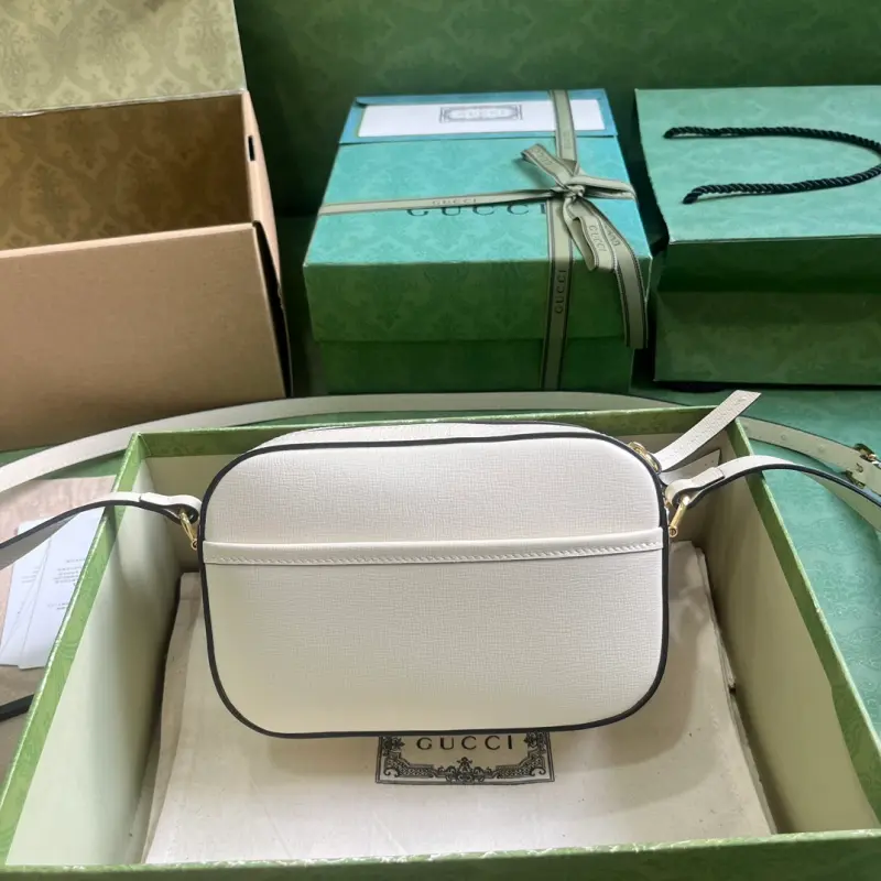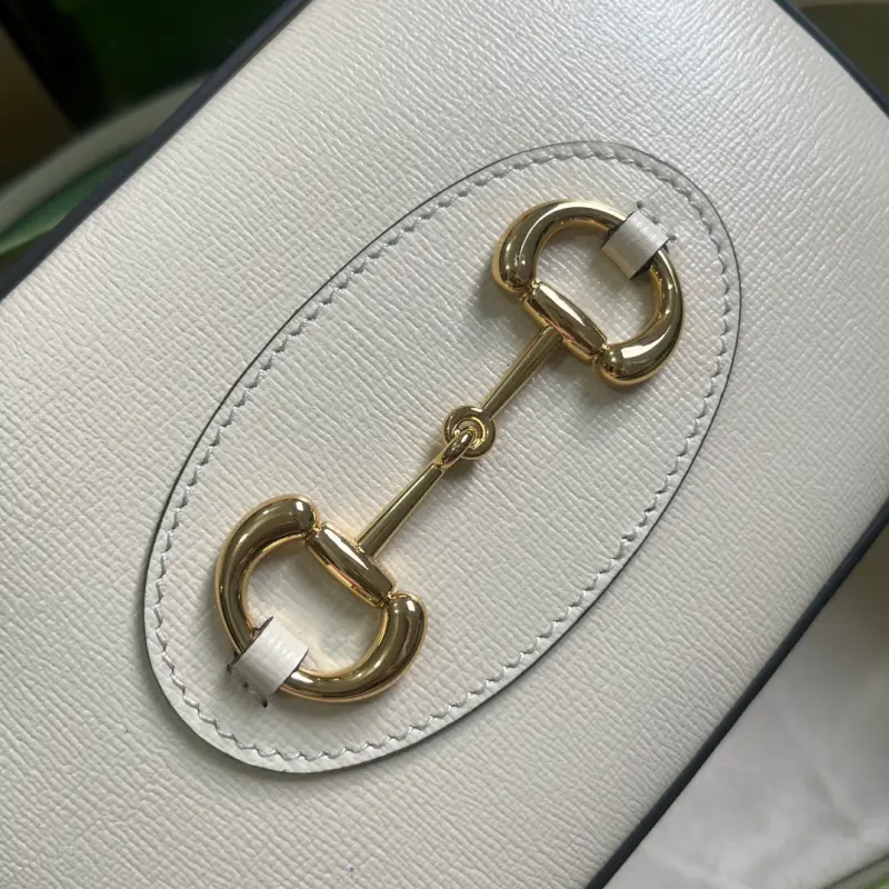 Gbag Horsebit 1955 small shoulder bag (comes with full original green box packaging). The new collection features the Gbag Horsebit 1955 small shoulder bag, combining versatility and practicality. Crafted from classic beige and ebony GG Supreme canvas, this shoulder bag features a zipper closure and an adjustable shoulder strap. The bag is crafted from white and ebony GG Supreme canvas with gold-tone hardware, a cotton and linen blend lining, and a horsebit buckle. The interior includes one card pocket, an exterior open pocket, and an adjustable shoulder strap (55 cm drop) with a zipper closure. Model No. 760196. Dimensions: 20 cm (width) x 13 cm (height) x 6 cm (depth). Color: White/Original Leather.