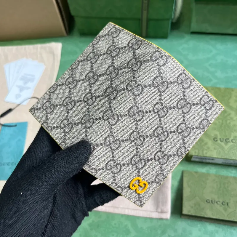 [Includes full original green box packaging] Long card holder with GG details. Gbag’s iconic GG detail cleverly blends with vibrant colors. This long card holder is expertly crafted from GG Supreme canvas with contrasting yellow details, adding a subtle touch of contrast to this compact everyday accessory. Crafted from beige and ebony GG Supreme canvas with yellow leather trim, brass hardware, a yellow ceramic-effect finish, and a moir?? fabric lining, the GG details feature within the interior, which includes eight card slots. Model No. 768249. Dimensions (open): 12 (L) x 15 (W) cm. Dimensions (closed): 12 (L) x 7.5 (W) cm. Color: Yellow/PVC.