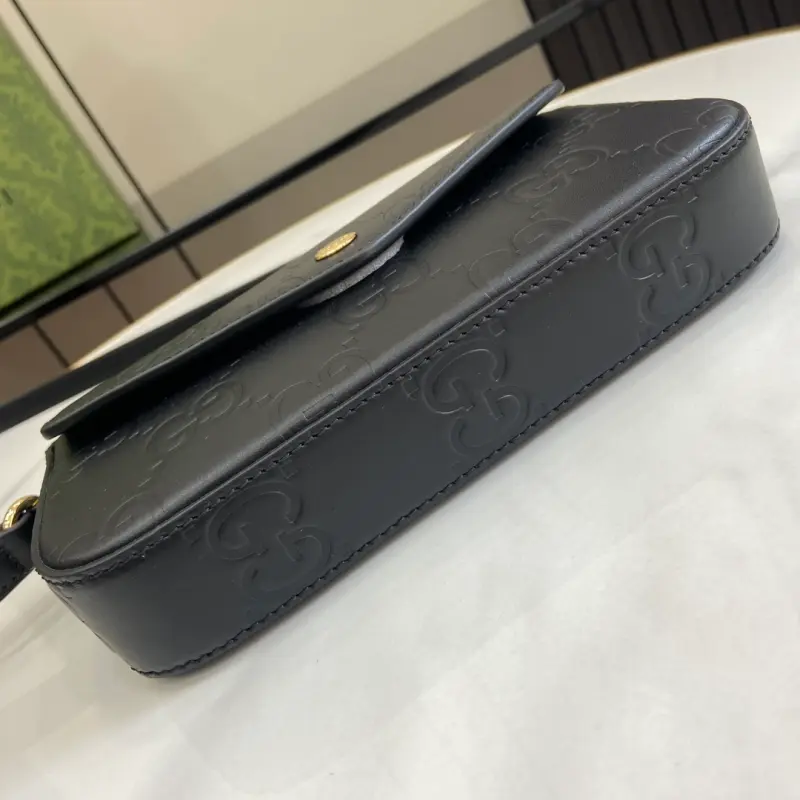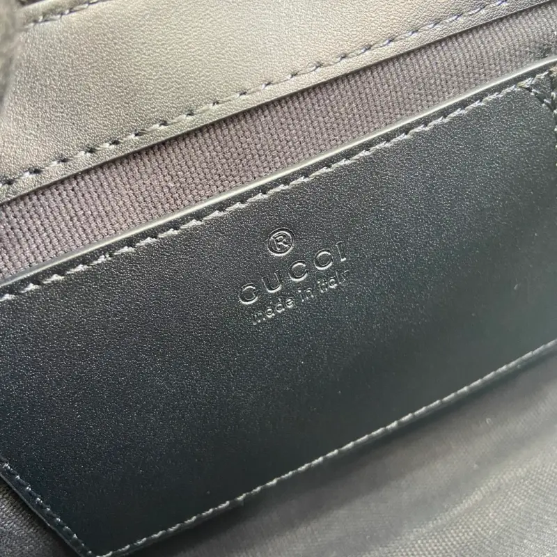 [Comes with a full set of original green box packaging] [New product] GG super mini shoulder bag. The initials of the brand’s founder, Mr. Gbago Gbag, add color to the leather accessories, integrating modern small leather goods with Gbag’s profound design heritage. The classic GG pattern with a textured and shiny feel injects a unique style into this elegant black mini shoulder bag. Black GG leather, cotton and linen blend lining, interior: one leather open pocket, adjustable shoulder strap (50 cm high) magnetic buckle closure. Model: 772794. Dimensions: 13.5 (length) x 21 (width) x 3 cm (thickness) Color: black/embossed original leather. Weight: approximately 0.34 kg Made in Italy