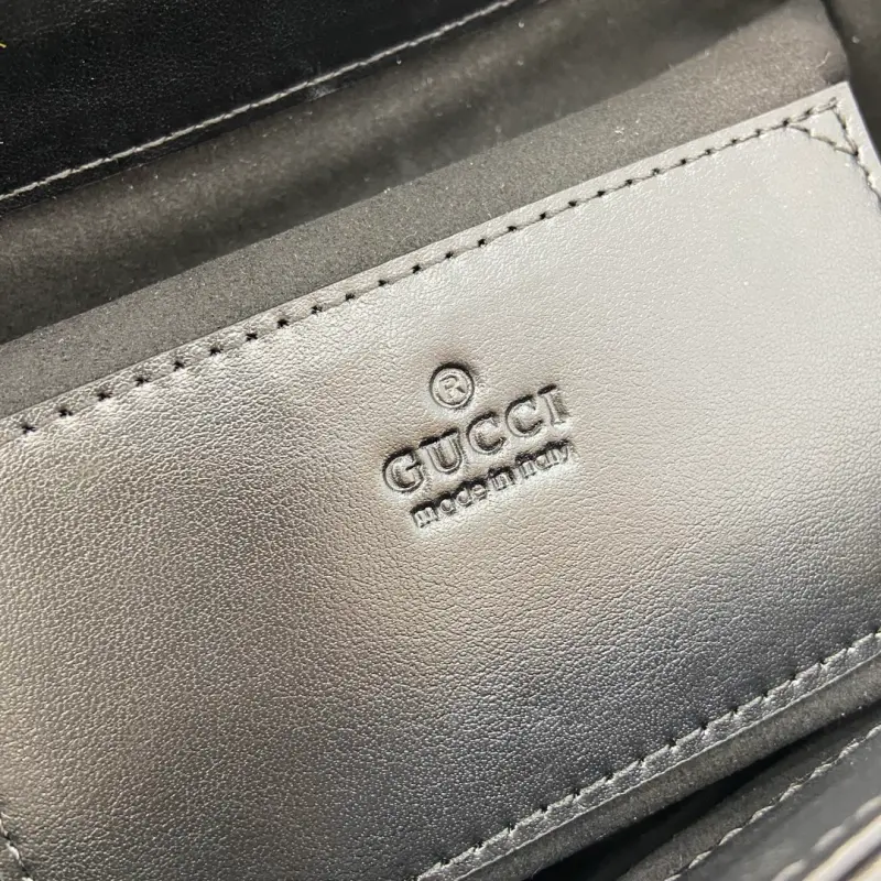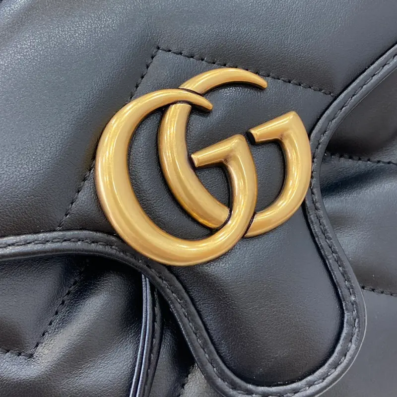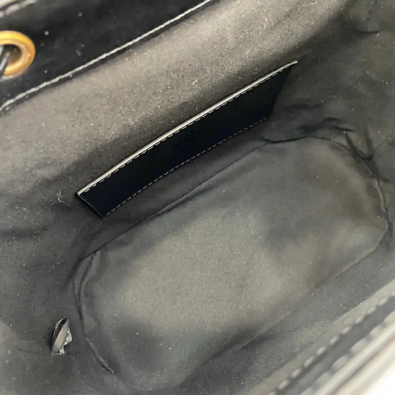 [Comes with a full set of original green box packaging] [New Product] GG Marmont Series Mini Backpack This GG Marmont Series backpack is crafted with quilted V-shaped leather. It is small, exquisite, soft and crisp. The double G shaped accessories are inspired by the brand’s classic design, and the flap shape hides an inner pocket with a drawstring. White quilted V-shaped leather, gold-tone metal hardware, suede material, microfiber lining As a selected item of Gbag Tag, this product supports NFC technology to enjoy a digital innovation experience. Double G Adjustable chain and leather strap Open inner pocket Chain handle: 6 cm (height) Shoulder strap (34 cm high) 20 cm (length) x 19 cm (width) x 11 cm (thickness) Italian creation model: 777253. Size: 20 (length) x 19 (width) x 11 cm (thickness) Color: black/original leather. Italian creation
