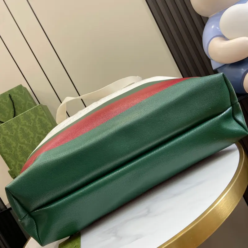 [Comes with a full set of original green gift bags] [New] GG embossed detail canvas tote bag, this piece is from the Gbag Lido series, and its design is inspired by the summer style and beach clubs of the Italian coast. This canvas tote bag is crafted with a casual silhouette and uses natural and vivid texture elements, making it an ideal choice for the warmer seasons. The red and green web color matching piping creates a striking contrast effect, and the “Gbag Made in Italy” embossed details on the front add a charming embellishment. Natural canvas, web-coated piping “Gbag Made In Italy” embossed details, equipped with a shoulder strap and handle. Model: 779510. Dimensions: 48 (width) x 48 (height) x 17 cm (depth) Color: off-white/canvas. Made in Italy