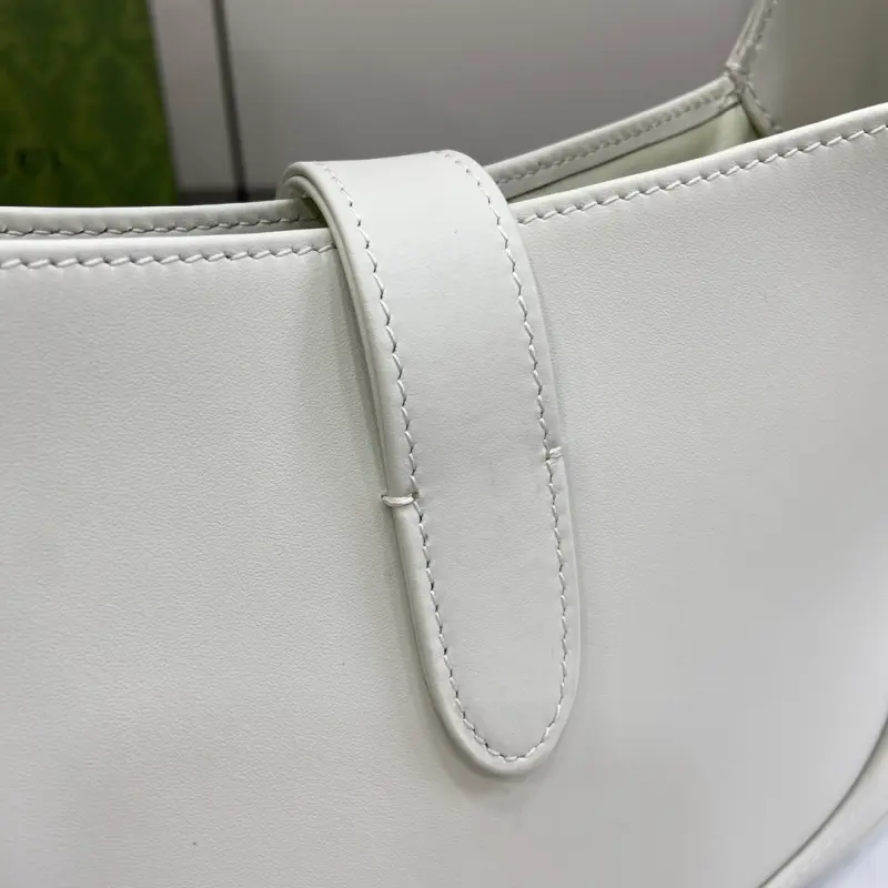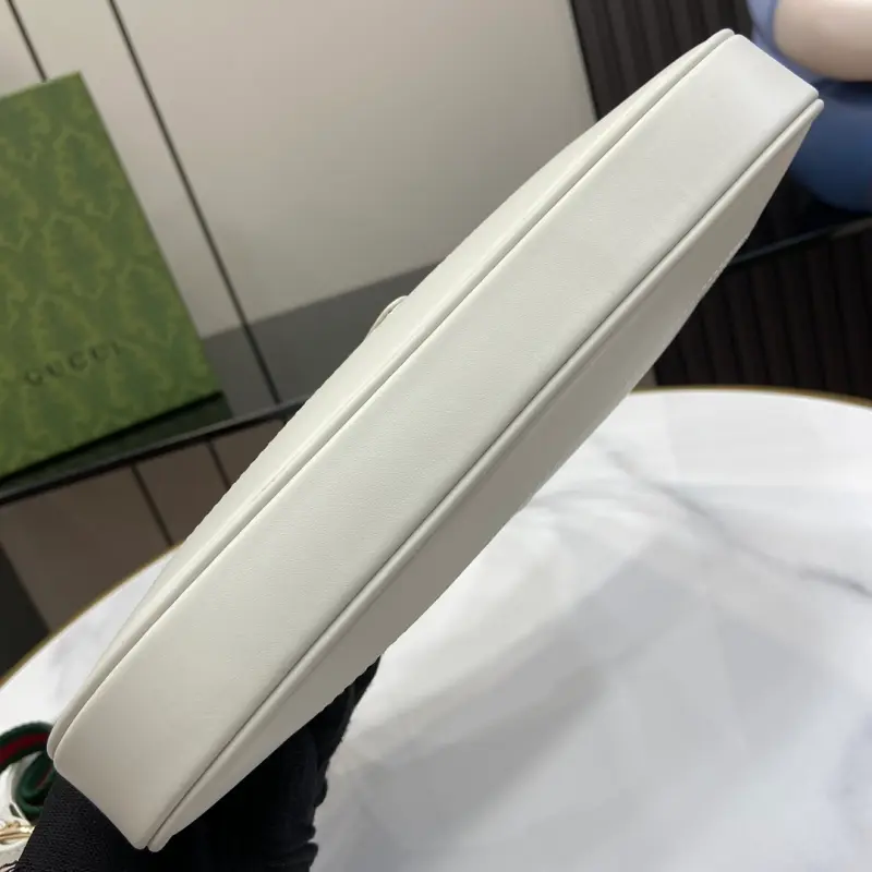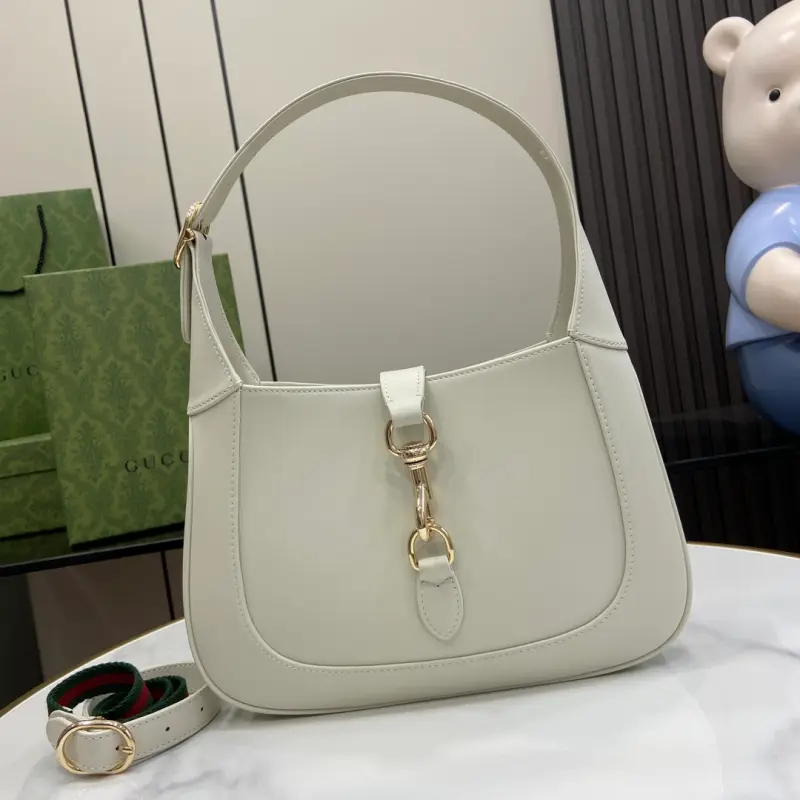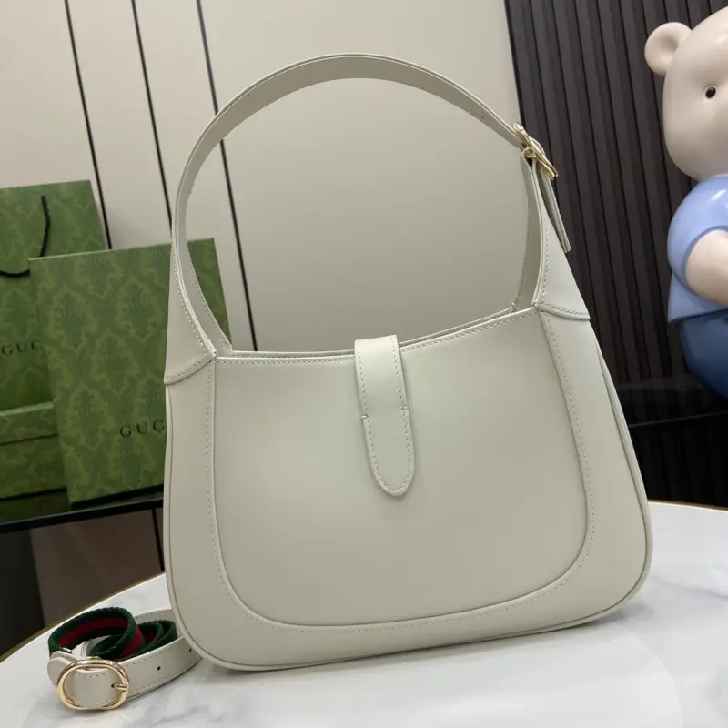 [Comes with a full set of original green box packaging] [New Product] Gbag Jackie series small shoulder bag. This new Gbag Jackie series shoulder bag is crafted from the finest quality leather, showcasing the exquisite craftsmanship, crescent shape and fashionable design of the brand’s classic shoulder bags. The combination of light gold-tone hardware, leather piping and a bonus strap decorated with red and green web brings more dressing possibilities to this Gbag Jackie series small shoulder bag made of the brand’s classic red Gbag Rosso Ancora leather. Gbag Rosso Ancora leather, light gold-tone hardware, leather lining, interior: one zipper pocket with Gbag badge zipper pull, handle (18 cm high) detachable web shoulder strap (52 cm high) hook closure, weight: approximately 0.4 kg. Model: 782849. Dimensions: 27.5 (width) x 19 (height) x 4 cm (depth) Color: White/original leather Made in Italy