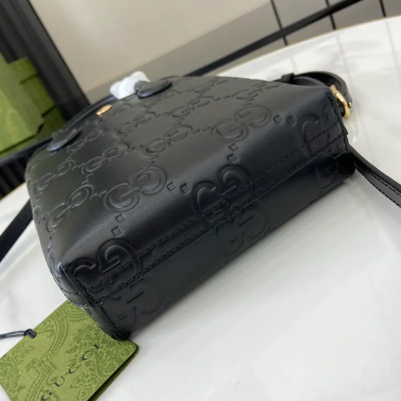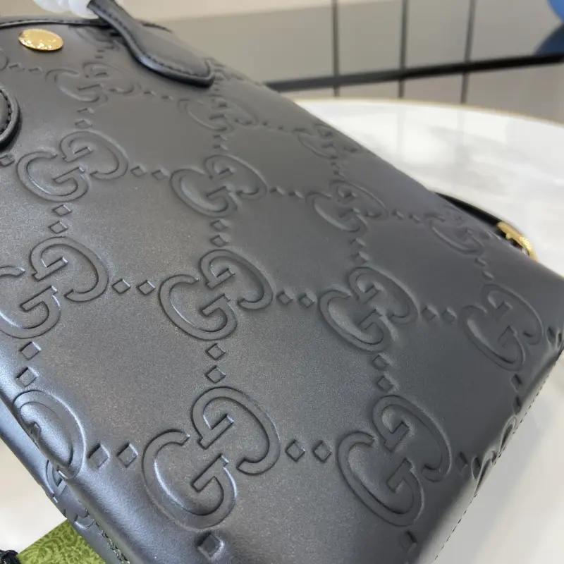 [Comes with a full set of original green box packaging] [New product] GG super mini handbag with shoulder strap. The brand’s iconic pattern has been transformed into a symbolic element that is varied yet classic, adding color to the new series. Black classic GG leather adds a touch of personality to this super mini handbag, and the external compartments and chain shoulder strap allow for a variety of wear methods. Black GG leather, suede-textured microfiber lining, top handle (7.5 cm high) and detachable shoulder strap (50 cm high); length can be adjusted between 95 cm and 110 cm, snap button placket, weight: approximately 0.25 kg. Model: 790133. Dimensions: 15 (width) x 20 (height) x 5 cm (depth) Color: black/embossed G original leather. Made in Italy