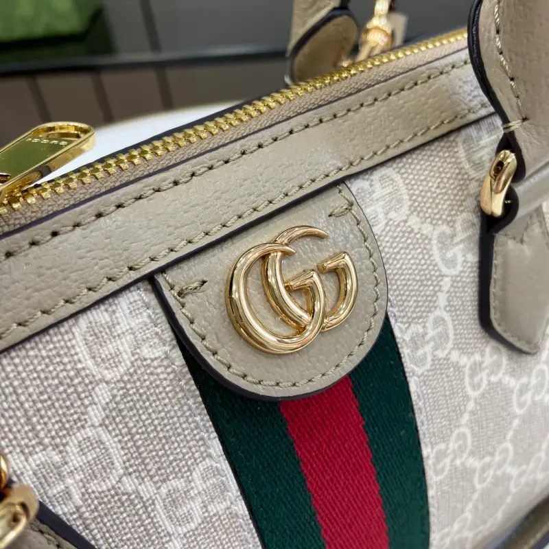 [Includes full original green box packaging] [New Arrival] Ophidia small handbag. The Ophidia collection celebrates the Pre-Fall collection with innovative designs. This handbag is crafted from beige and ebony GG Supreme canvas with a detachable and adjustable shoulder strap. The brand’s striped web detail and Double G hardware add a touch of flair. Beige and ebony GG Supreme canvas with oatmeal leather trim, gold-tone hardware, red and green striped web, and oatmeal cotton and linen lining with Double G. Interior: one open pocket, handles: 7.5 cm (height), detachable and adjustable leather shoulder strap (adjustable from 101 cm to 116 cm), zip closure. Weight: approximately 0.6 kg. Model No. 795249. Dimensions: 31.5 cm (width) x 16.5 cm (height) x 8 cm (depth). Color: Oatmeal/PVC.