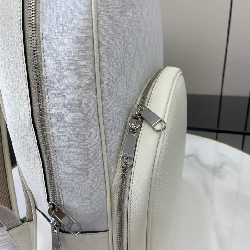 [Comes with a full set of original green gift bags] [New product] Medium GG backpack with GG logo. Selected bags such as mini crossbody bags, briefcases and tote bags interpret the new style with practical details. This backpack is crafted from white leather and GG Supreme canvas and has one inner pocket and one outer pocket. The “Gbag Made in Italy” leather label injects an elegant brand logo charm into the entire design. White GG Supreme canvas, white leather piping, cotton and linen blend lining “Gbag Made in Italy” leather label, interior: one zipper pocket, exterior: one back pocket, top handle height: 9 cm, zipper closure. Model: 795462. Dimensions: 40 (length) x 29 (width) x 14 cm (thickness) Color: white/pvc. Weight: approximately 1.4 kg