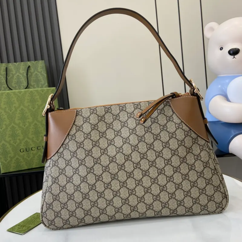 [Includes full original green box packaging] [New] GG shopping bag. The GG pattern and striped ribbon, two of the brand’s most recognizable elements, combine to create a classic combination. The world of Ophidia never stops evolving, adding unique styles and shapes, constantly introducing new models. Model: 815217. Size: 36 x 3.5 x 7.5 cm. Color: Brown/PVC