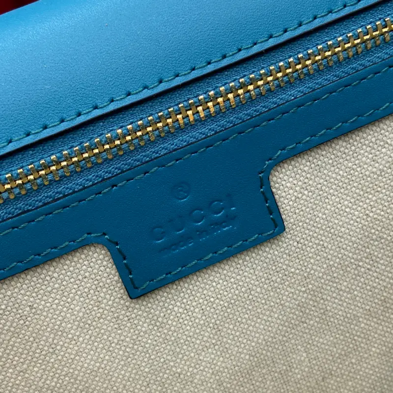 [Includes full set of original green box packaging] [New] Gbag Blondie series medium handbag. The new handbag in the Gbag Blondie series is decorated with the classic logo of the brand series that debuted in the early 1970s. It cleverly combines the charm of heritage with contemporary style, and perfectly interprets the brand’s classic design and modern essence. This medium handbag is made of blue and light blue Original GG canvas and comes with a detachable and adjustable leather shoulder strap. Model: 815719. Dimensions: 32 (length) x 17 (height) x 10 cm (thickness) Color: Blue nubuck leather/original leather. Made in Italy