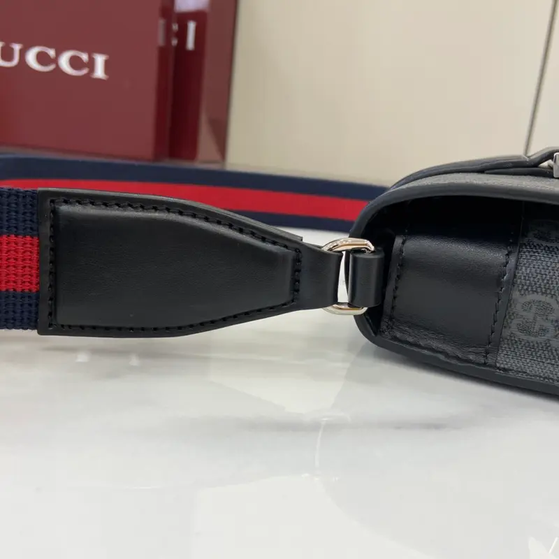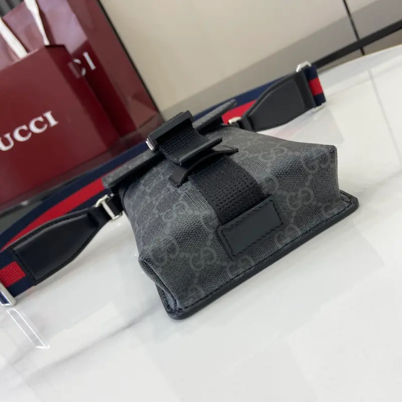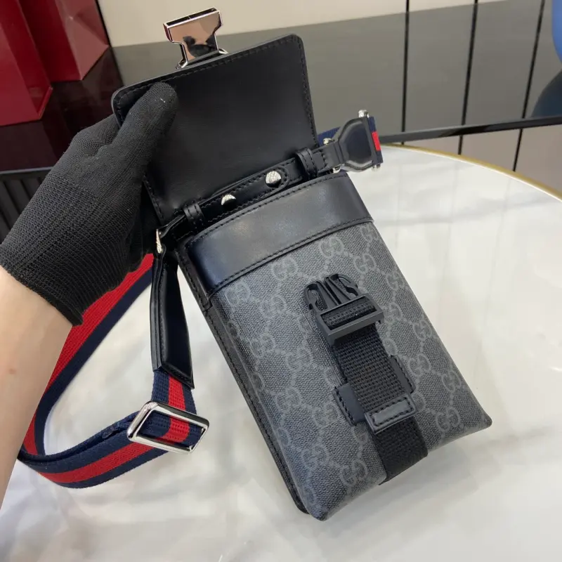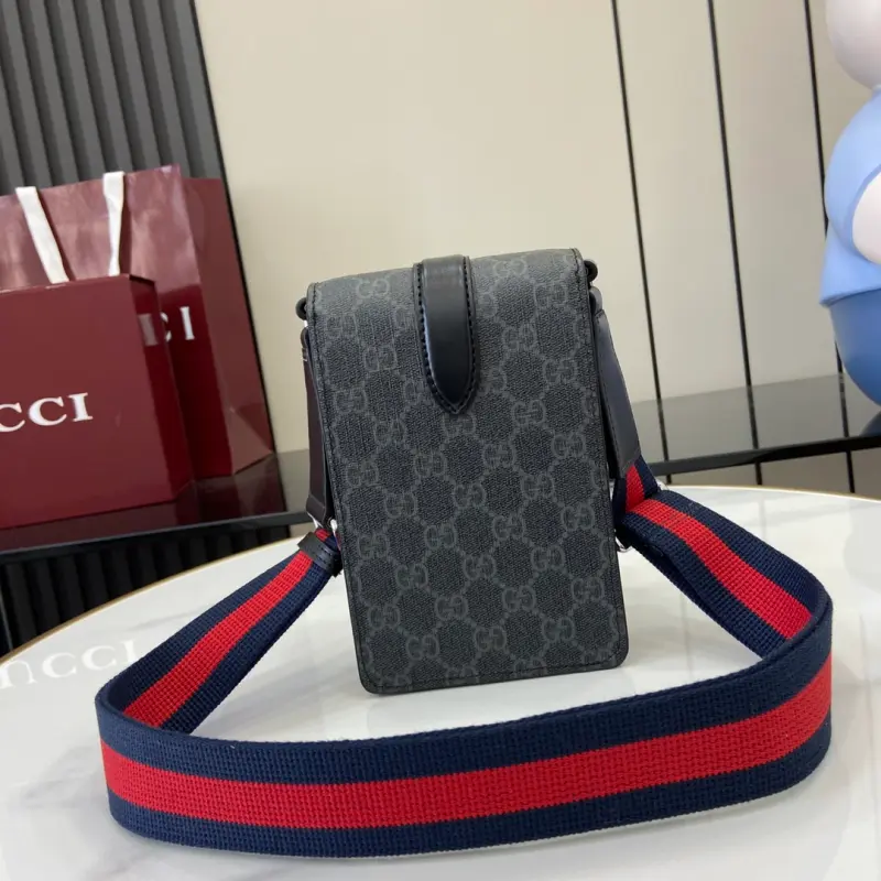 [Comes with full set of original green box packaging]The 2025 early spring series presents a super mini handbag, which is an ideal choice for daily look. Everyday accessories are reinterpreted with modern aesthetics and practical items, embellished with classic monogram patterns. This super mini handbag is crafted in black GG Supreme canvas and equipped with a web strap, which injects a touch of bright color into this accessory. Black GG Supreme canvas, black leather piping, red and blue web, cotton and linen blend lining, interior: three card compartments, adjustable canvas shoulder strap, metal hook closure, weight: about 354 grams, size: 11 cm (width) x 18 cm (height) x 4 cm (depth), model number: 816954. Color: rubber/original leather, made in Italy