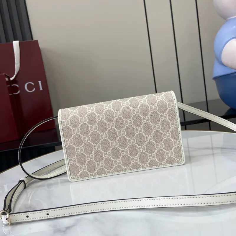 [Comes with a full set of original counter packaging] [New] The GG Emblem series reinterprets the brand’s iconic pattern with creative design and innovative functions, and is ingeniously created to be a collectible choice for years to come. This beige and white shoulder bag reinterprets the brand’s new small accessories series, and is carefully crafted from a new GG monogram pattern fabric. Carefully embellished with off-white leather piping and a Gbag embossed logo. Beige and white new GG letter pattern coated fabric off-white leather piping webbing taffeta lining Gbag embossing is also equipped with a D-ring for hanging detachable items contrast stitching interior: 1 zipper pocket, multiple card compartments with flat pockets adjustable shoulder strap (52 cm high) snap closure color: 820688. Dimensions: 20 cm (width) x 12.5 cm (height) x 5 cm (depth) Weight: approximately 323 grams Color: Beige rubber off-white/original leather. Made in Italy