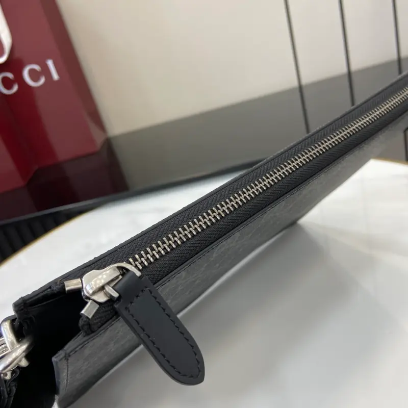 [Comes with a full set of original red box packaging] [New] The GG Emblem series reinterprets the classic pattern with creative design and innovative functions, and is ingeniously created to be a collectible choice for the next few years. This full zipper wallet is ingeniously crafted with the new black GG monogram pattern fabric, reinterpreting the new accessories series. It has 6 card compartments. Black new GG monogram pattern coated fabric with black leather piping Interior: six card compartments, detachable wrist strap, zipper closure model: 821155. Dimensions: 28 cm (width) x 22 cm (height) x 3.5 cm (thickness) Weight: approximately 387 grams Color: black leather/original leather. Made in Italy