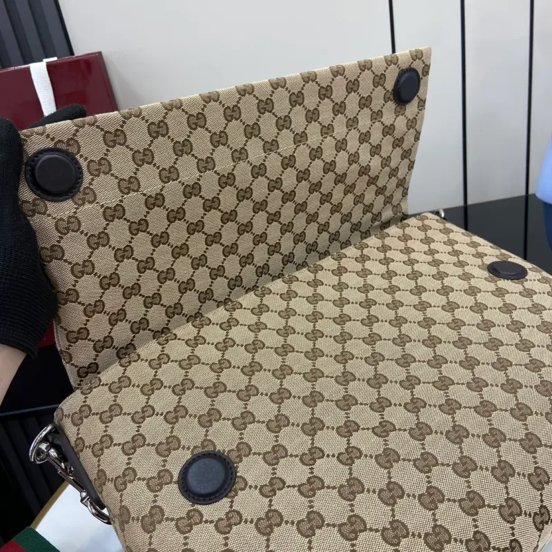 [Comes with full original factory packaging] [New Arrival] The Spring/Summer 2025 collection presents a stunning new handbag. This men’s handbag features a soft yet structured shape and smooth texture, and features a magnetic flap closure for easy use. It embodies exquisite craftsmanship and practical design. This crossbody bag is expertly crafted from beige and dark brown GG canvas. The subtle and restrained Gbag print and embossed logo on the back are the finishing touch. Beige and dark brown GG canvas, red and green web canvas, brown nylon lining, Gbag print and embossed logo. Interior: 1 zipper pocket. Exterior: Leather open pocket with Gbag logo. Top handle drop: 19 cm. Adjustable web canvas shoulder strap (55 cm drop); adjustable length from 93 cm to 138 cm. Flap closure with magnetic clasp. Model number: 821616. Dimensions: 36cm (width) x 25cm (height) x 12cm (depth) Weight: Approx. 1.23kg Color: Apricot Brown/Original Leather. Made in Italy